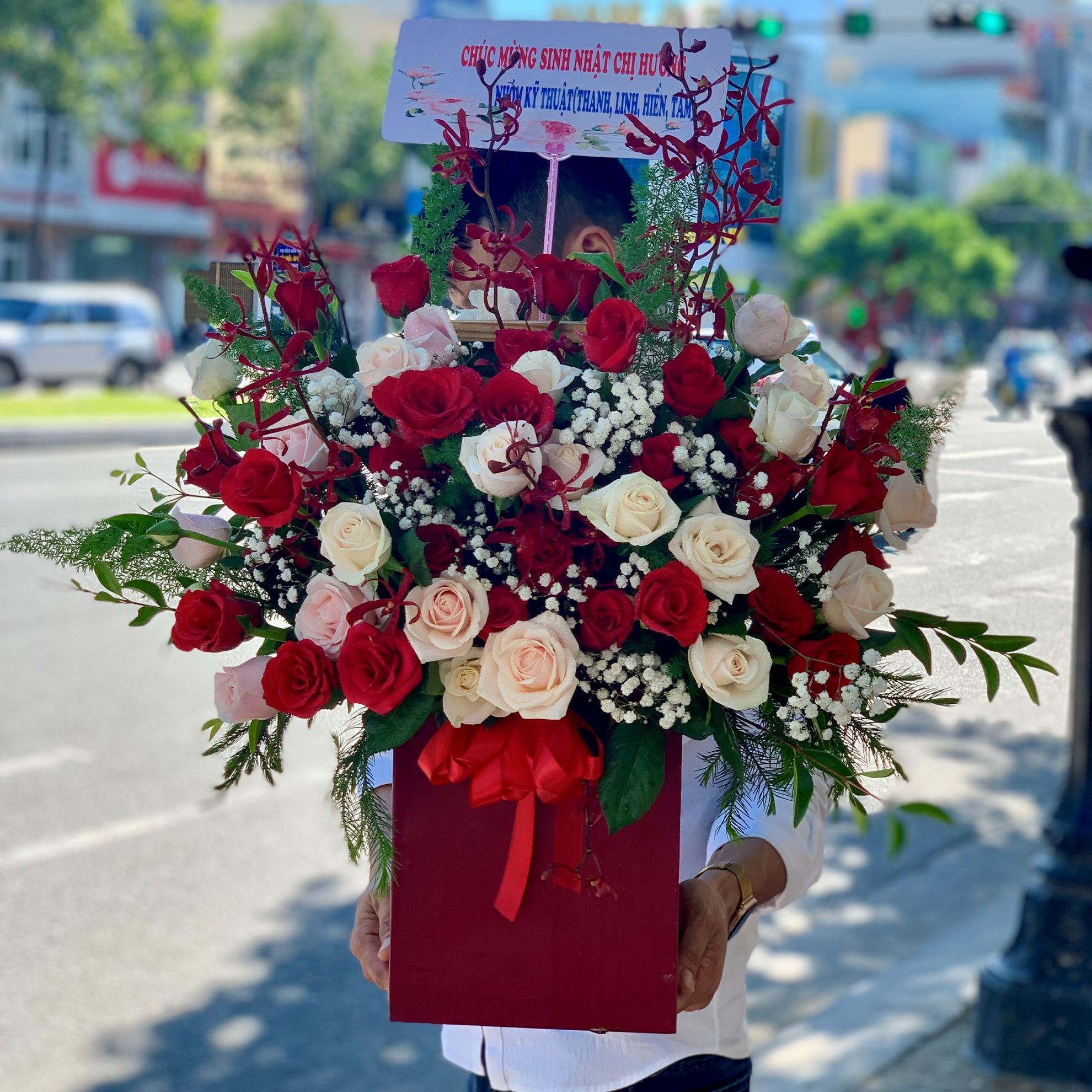 Hoa giỏ hồng kem, đỏ, lan nhện-HG133