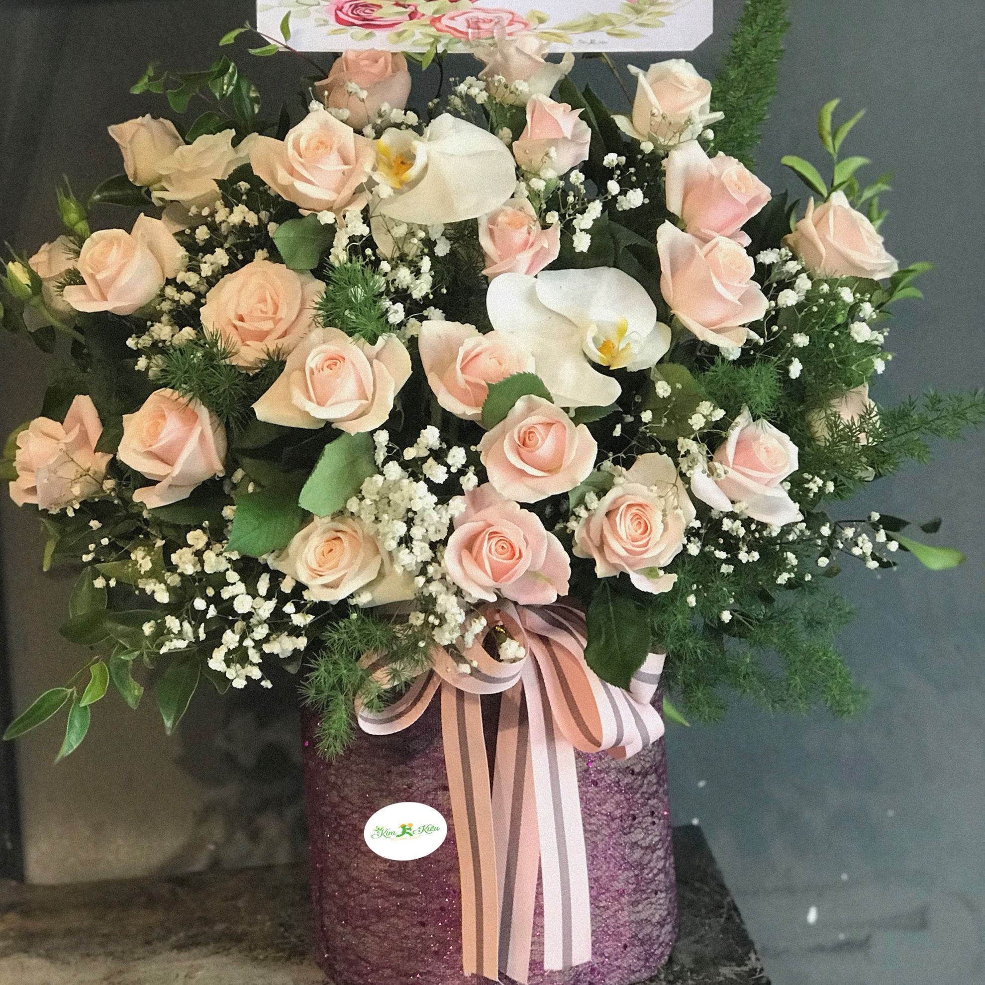 Hoa giỏ hồng kem, lan hồ điệp-HG92