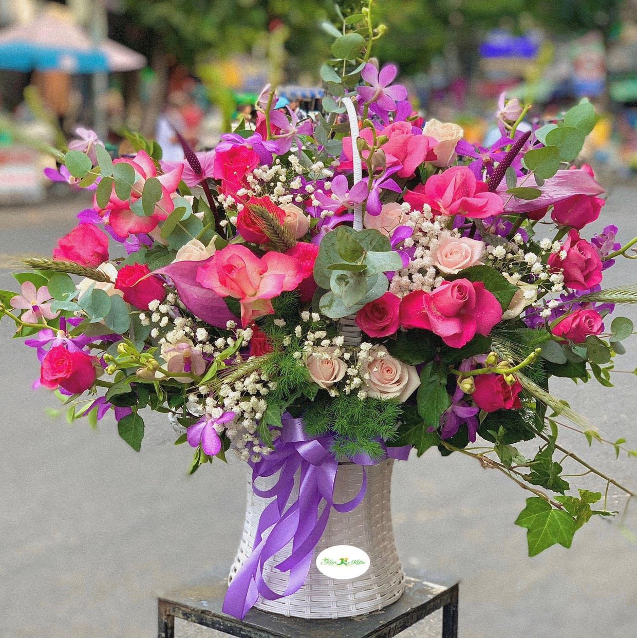 Hoa giỏ hồng mix lan tím- HG18