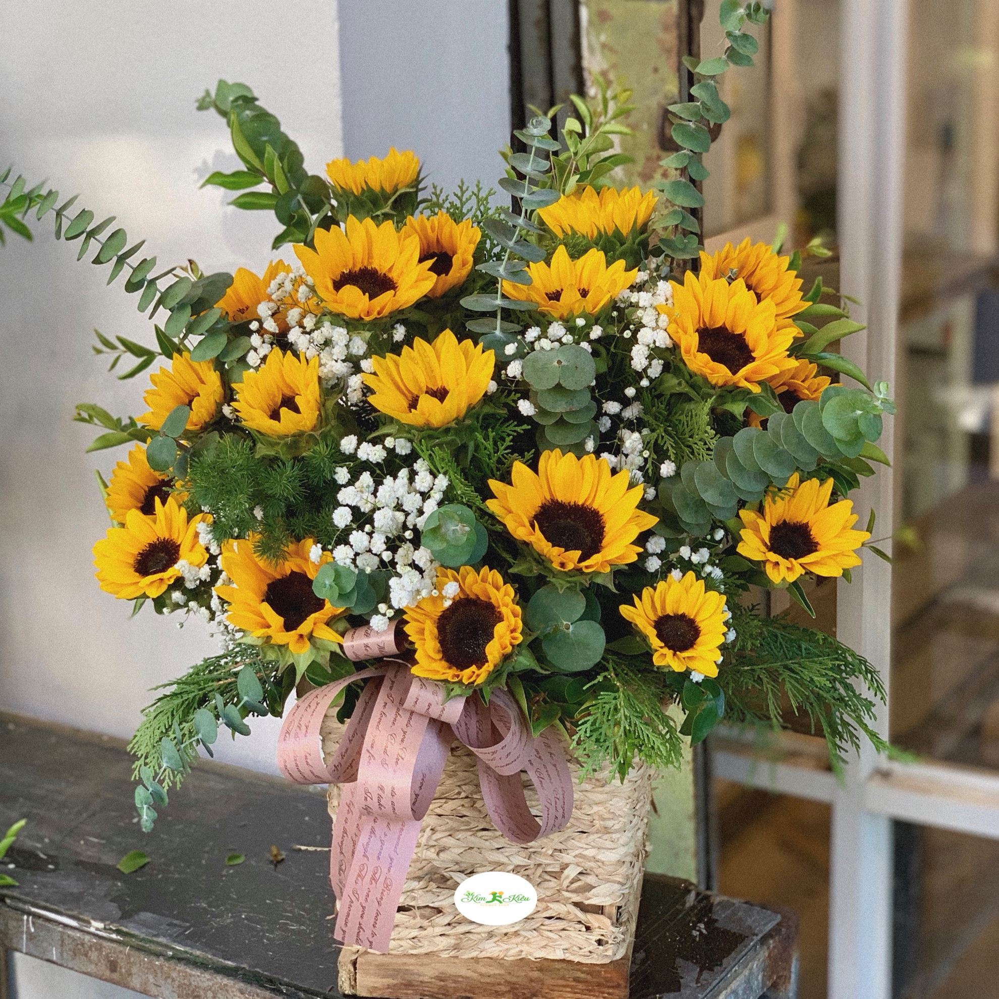 Mẫu HG48: Được làm từ những bông hướng dương tươi nhất và điểm tô bởi những nhánh baby trắng, lẵng hoa tỏa sáng rực rỡ và mang đầy sức sống, may mắn như nắng ngày hè. Đây sẽ là món quà vô cùng phù hợp nếu như bạn muốn tạo một ấn tượng đến đối tác, đồng nghiệp, bạn bè, hay những người mà bạn thương yêu quan tâm nhất. - Mẫu HG48 gồm các loại hoa: + hoa hướng dương + và các hoa,lá phụ khác - Liên hệ KIM KIỀU FLOWER để tư vấn thiết kế mẫu hoa theo yêu cầu bạn nhé!
