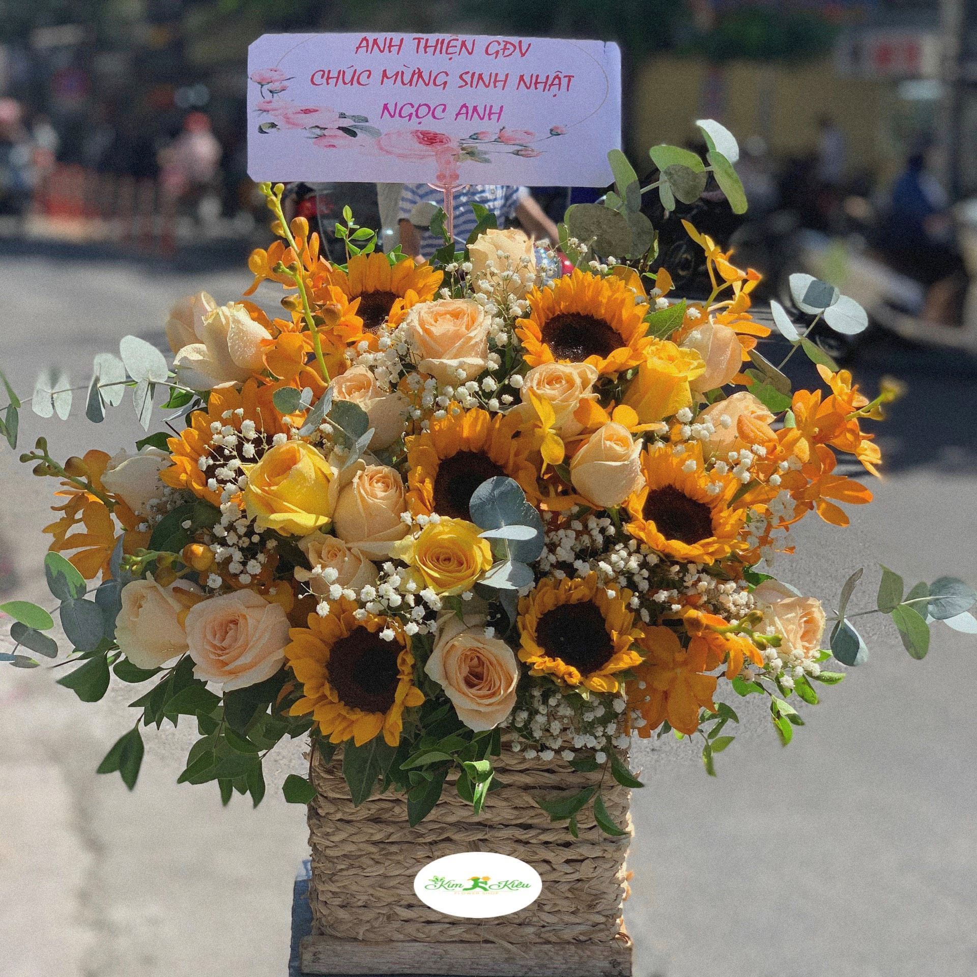 Mẫu HG84: Lẵng hoa tông vàng với hướng dương làm chủ đạo, loài hoa chứa đựng hình ảnh một cuộc sống tươi sáng, tràn đầy năng lượng như ánh mặt trời nhưng luôn đem đến cho ta cảm giác hạnh phúc bất tận. Lẵng hoa thích hợp tặng cho người thân, người yêu, bạn bè, đối tác... - Mẫu HG84 gồm các loại hoa: + hoa hướng dương + hoa hồng mỡ gà + lan vàng + và các hoa,lá phụ khác - Liên hệ KIM KIỀU FLOWER để tư vấn thiết kế mẫu hoa theo yêu cầu bạn nhé!