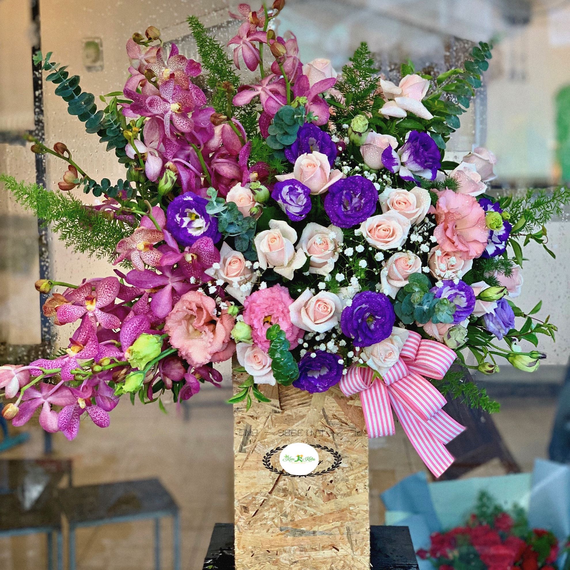 Hoa giỏ lan tím,cát tường,hồng kem- HG35