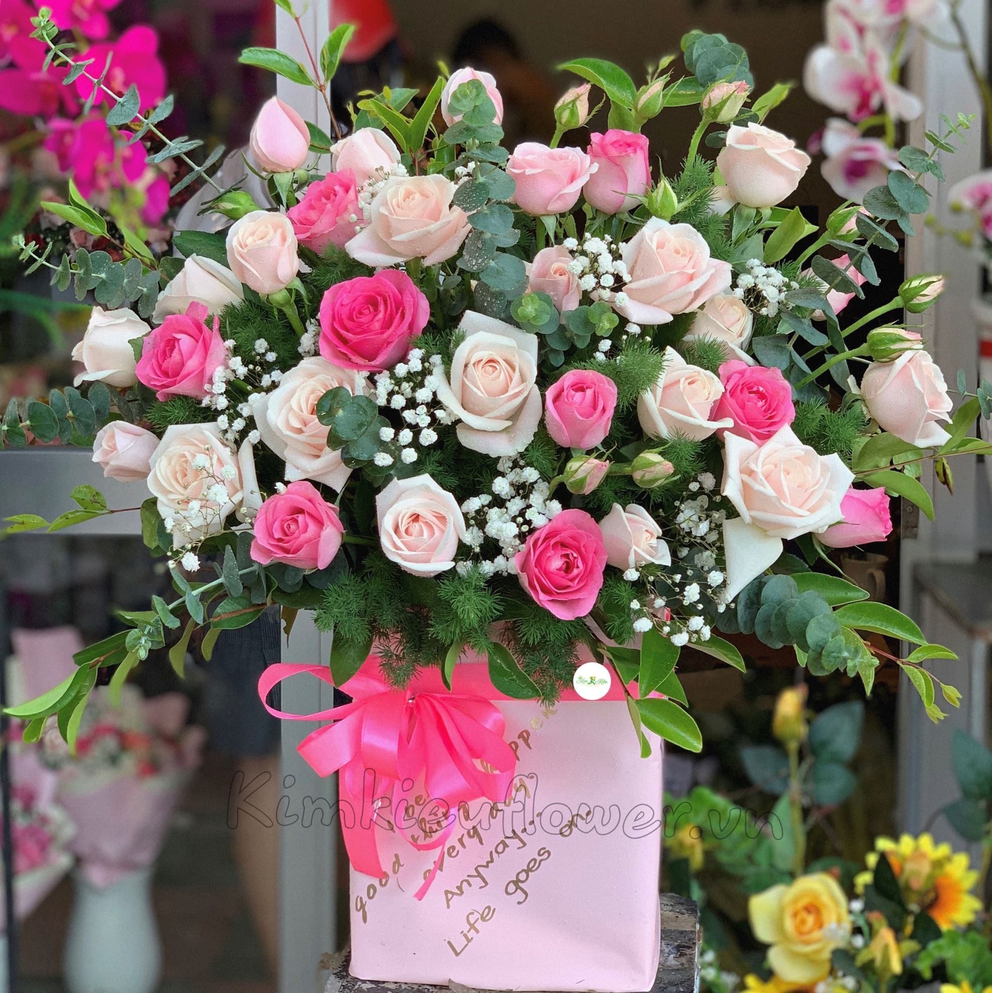 Mẫu HG138 gôm các loại hoa: + hoa hồng kem + hoa hồng dâu + và các hoa,lá phụ khác - Liên hệ KIM KIỀU FLOWER để tư vấn thiết kế mẫu hoa theo yêu cầu bạn nhé!