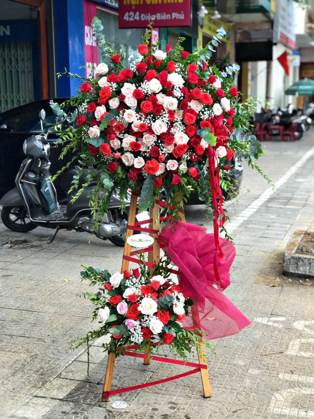Mẫu KH13: Những đoá hồng rực rỡ nhất, tươi thắm nhất được tuyển chọn bởi bàn tay điêu luyện, lành nghề của thợ hoa chuyên nghiệp đem đến một nét đẹp đơn giản nhưng hoàn thiện nhất. Không cần sự xa hoa, lộng lẫy, kệ hoa khai trương nồng nhiệt chỉ với hồng cam đỏ, hồng kem và baby trắng cũng như đã toát lên vẻ đẹp vốn có của sự tự nhiên, thật mộc mạc và thật thuần khiết mà cũng thật yêu kiều và xinh đẹp. - Mẫu KH13 gồm các loại hoa: + hồng cam đỏ + hồng đỏ + hồng kem + baby Hà Lan giống nhập + và các hoa,lá phụ khác - Liên hệ KIM KIỀU FLOWER để tư vấn thiết kế mẫu hoa theo yêu cầu bạn nhé!