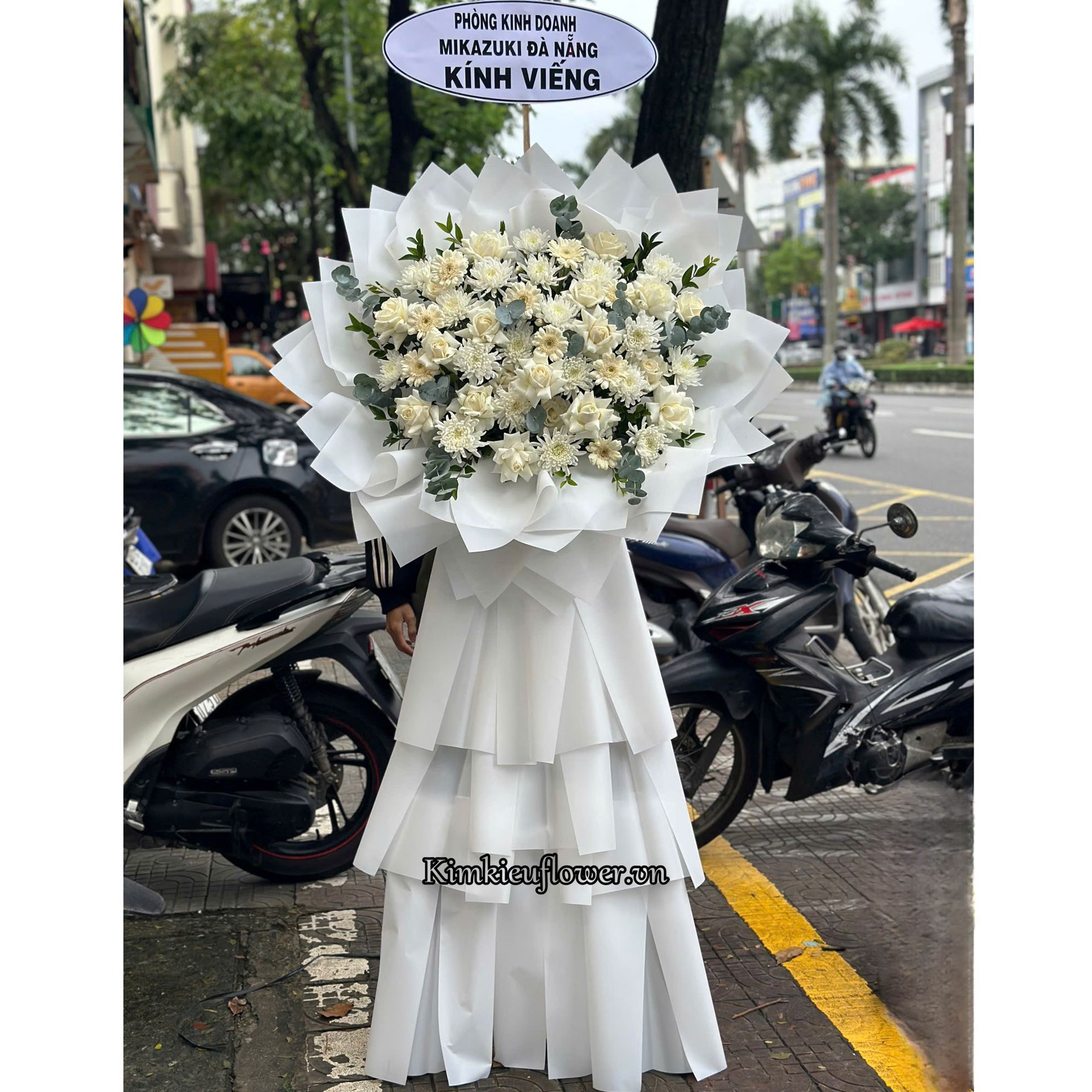 Kệ hoa chia buồn hồng trắng mix cúc trắng - KV261