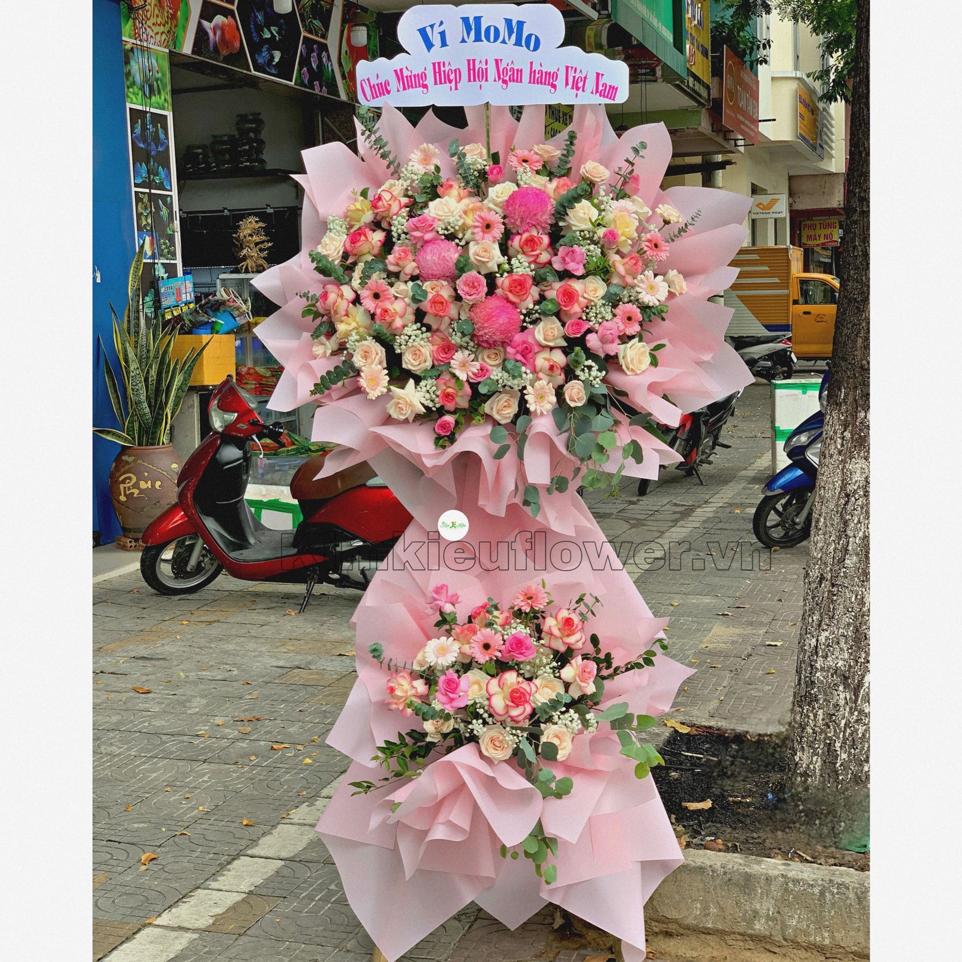 Kệ hoa chúc mừng cúc mẫu đơn , hoa hồng - KH136