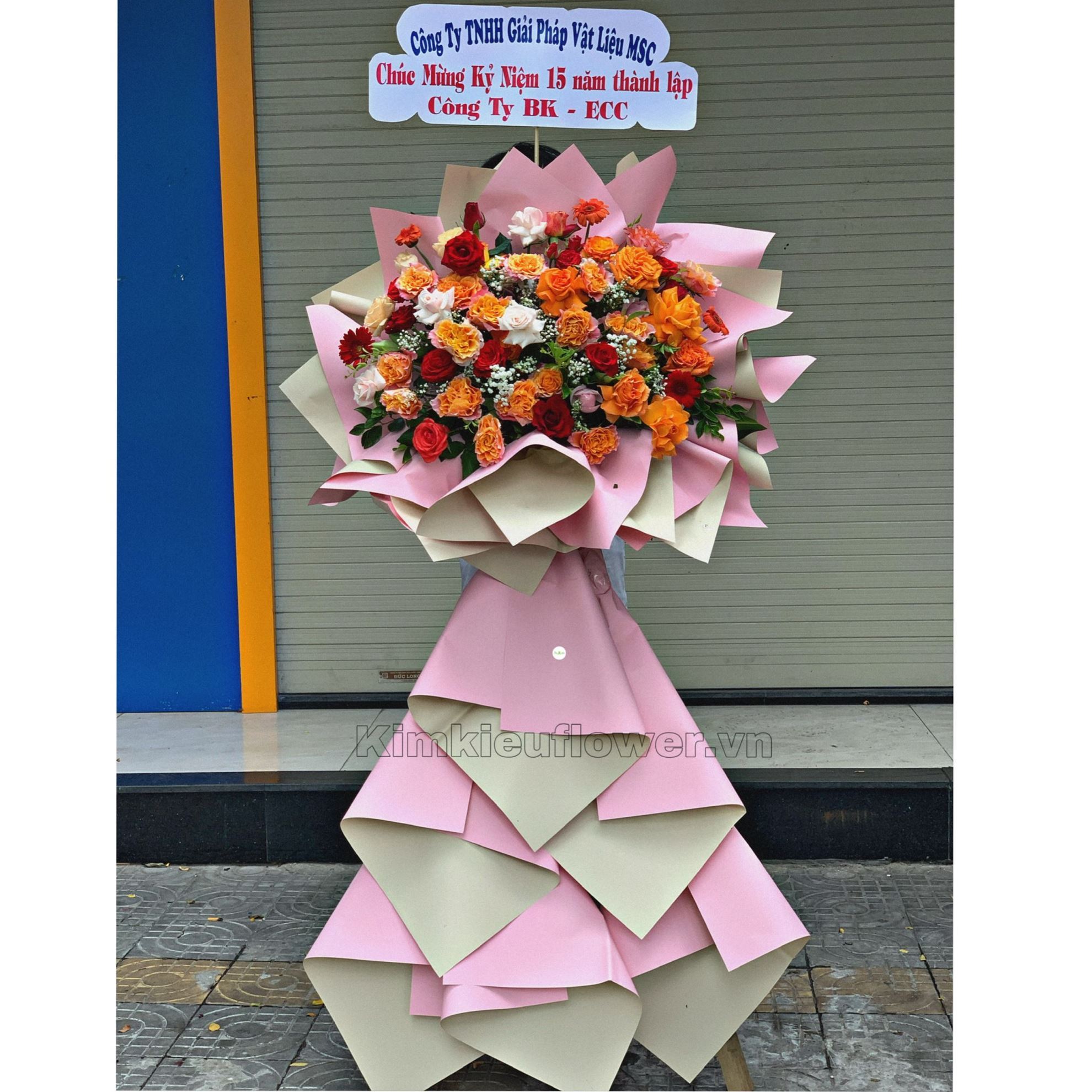 Kệ hoa chúc mừng hồng cam spirit, hoa hồng - KH153