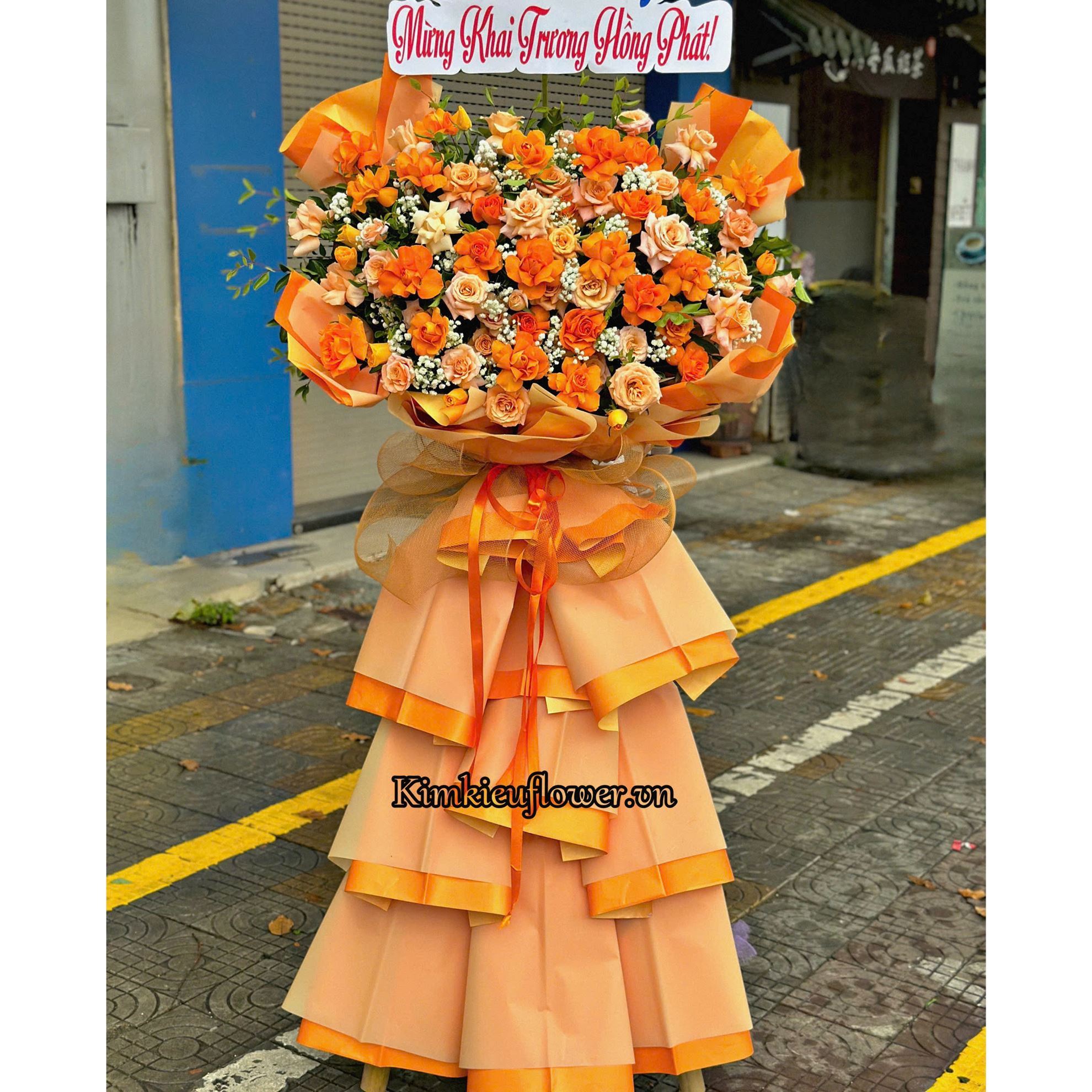 Kệ hoa chúc mừng hồng shimmer mix cam quốc vương - KH288