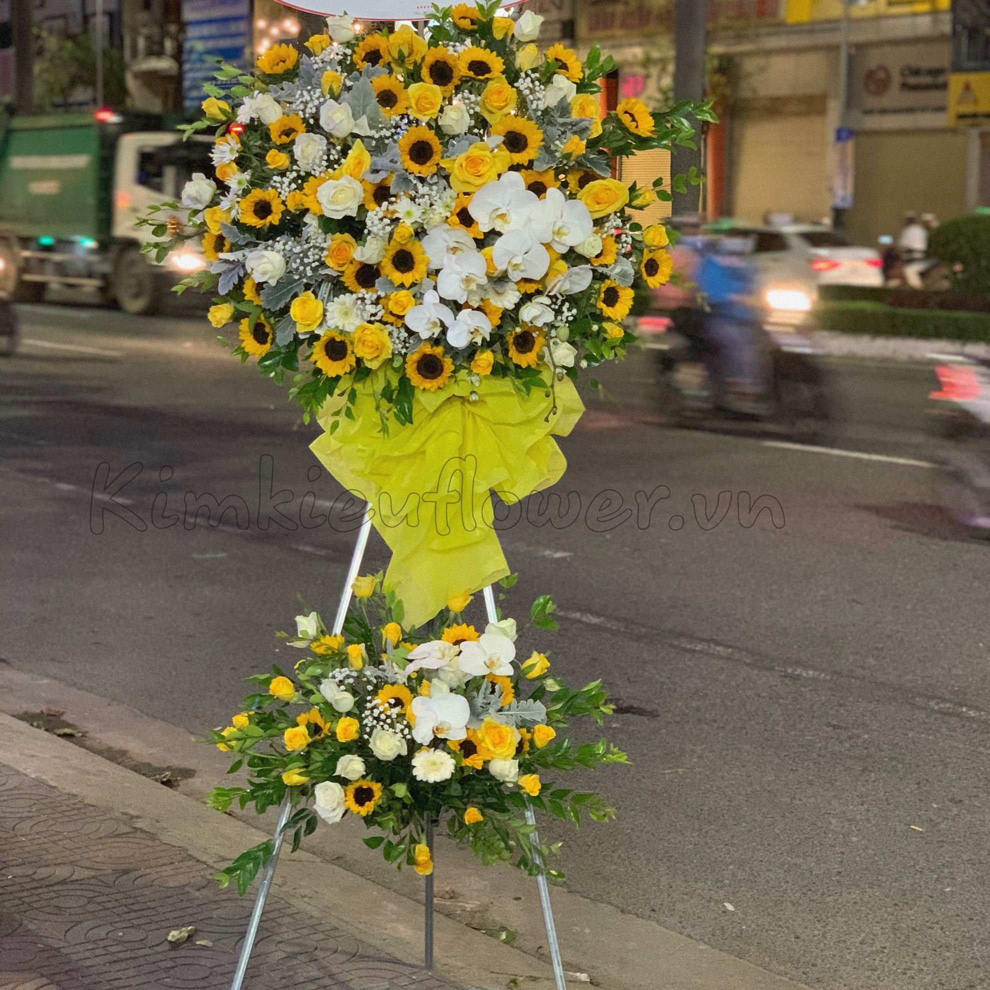 Kệ hoa chúc mừng lan hồ điệp , hướng dương-KH38