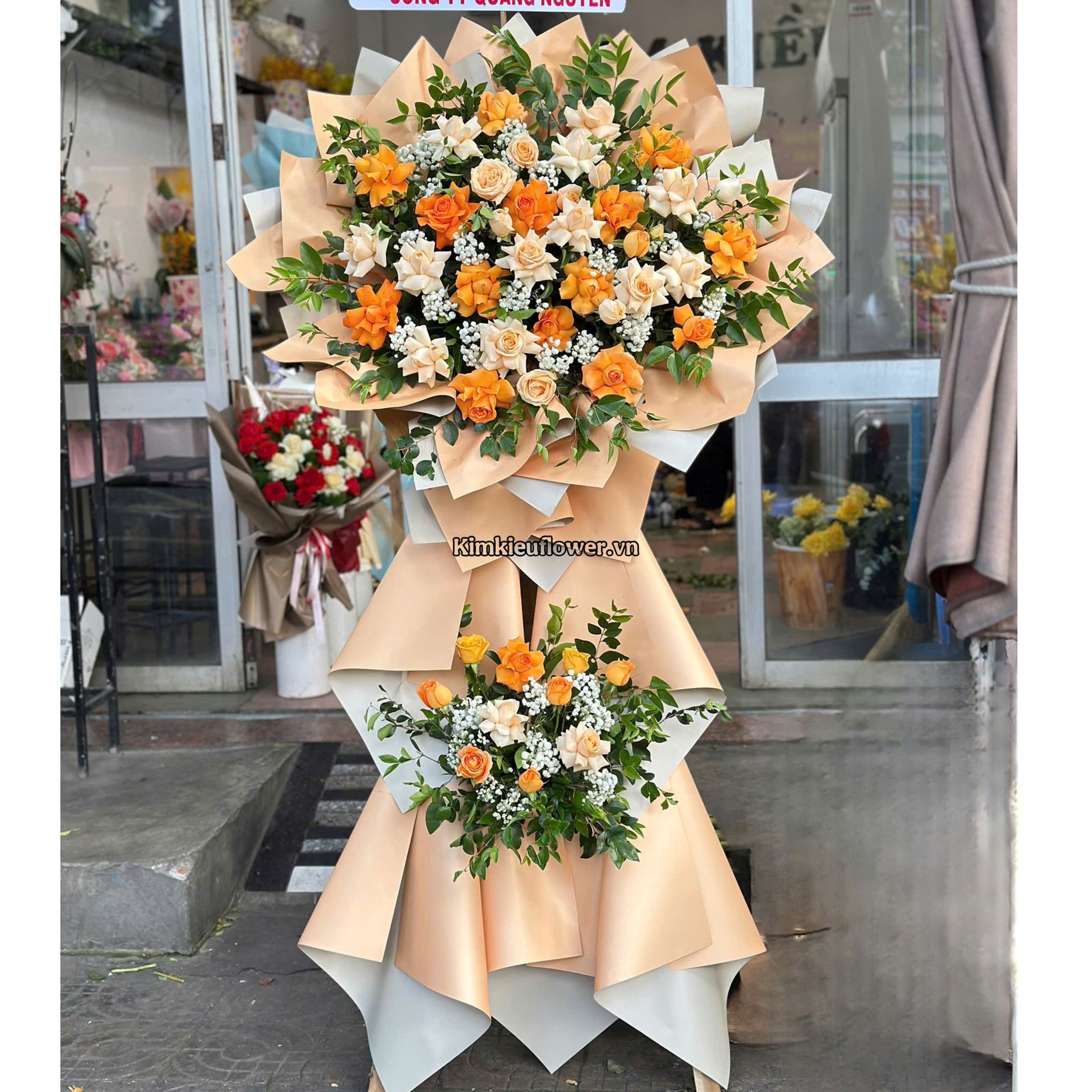 Kệ hoa chúc mừng tone cam, mỡ gà - KH416