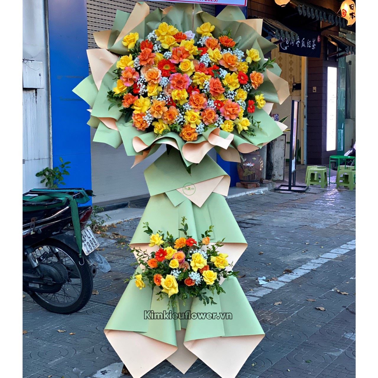Kệ hoa chúc mừng tone cam vàng - KH183