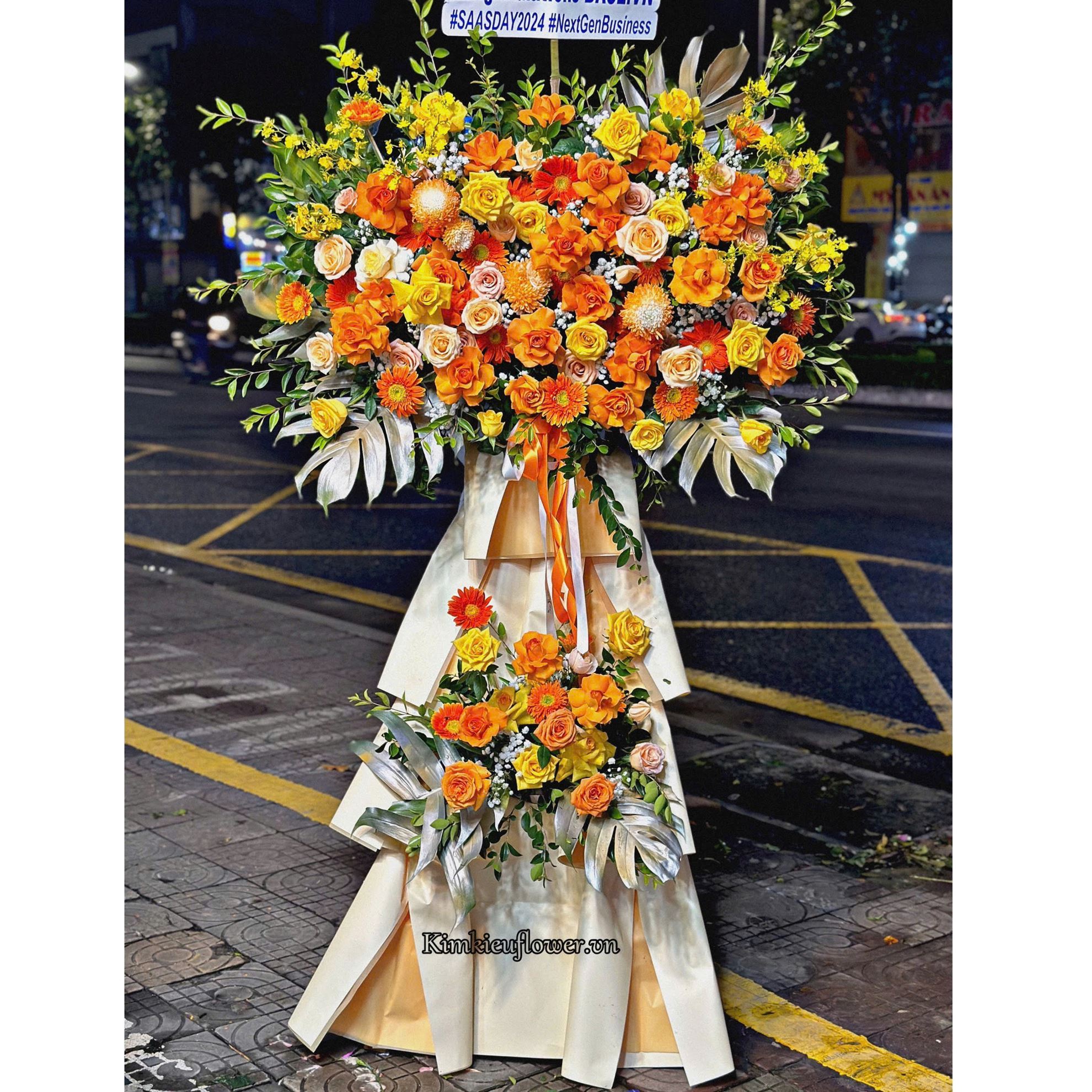 Kệ hoa chúc mừng tone cam vàng - KH310