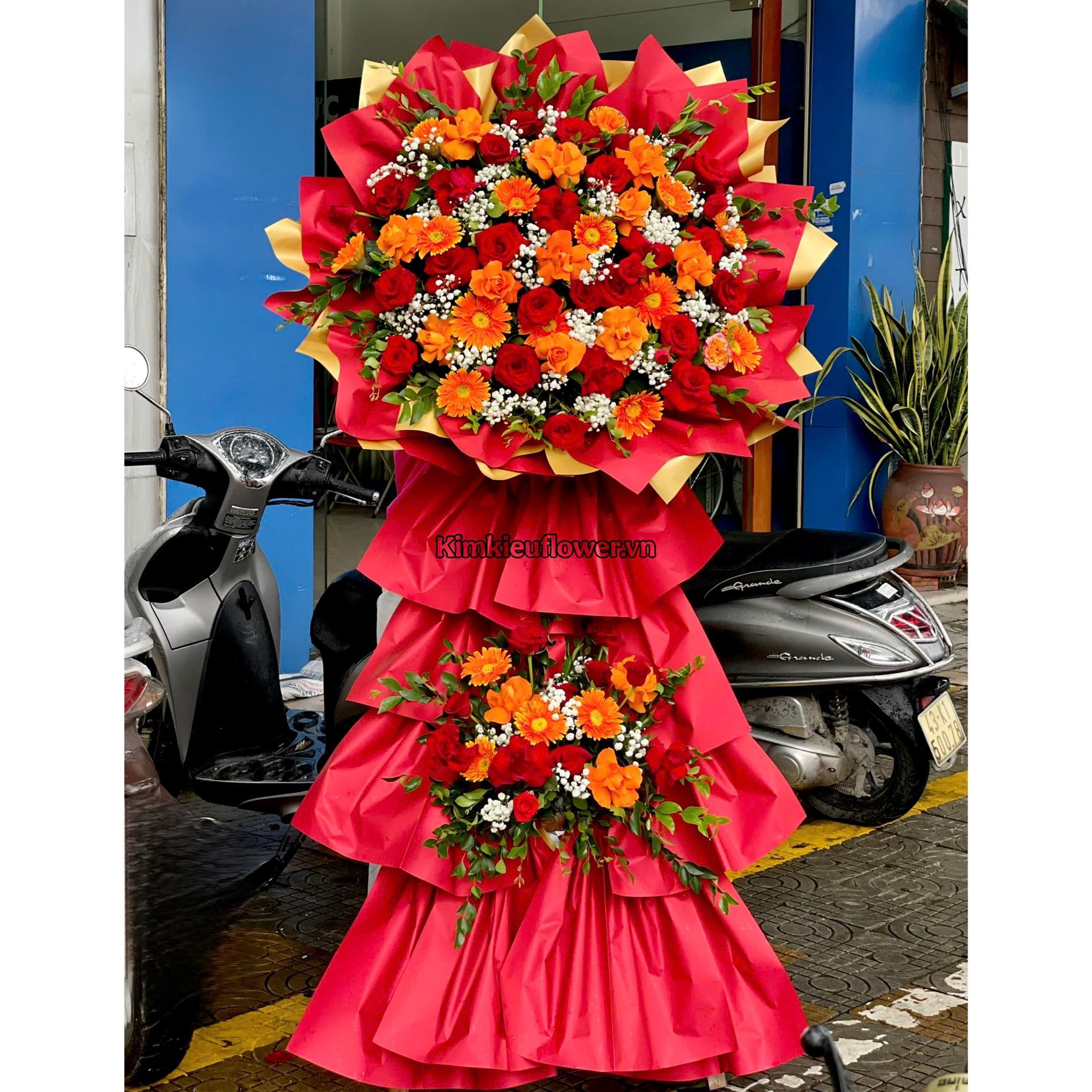 Kệ hoa chúc mừng tone đỏ cam - KH465