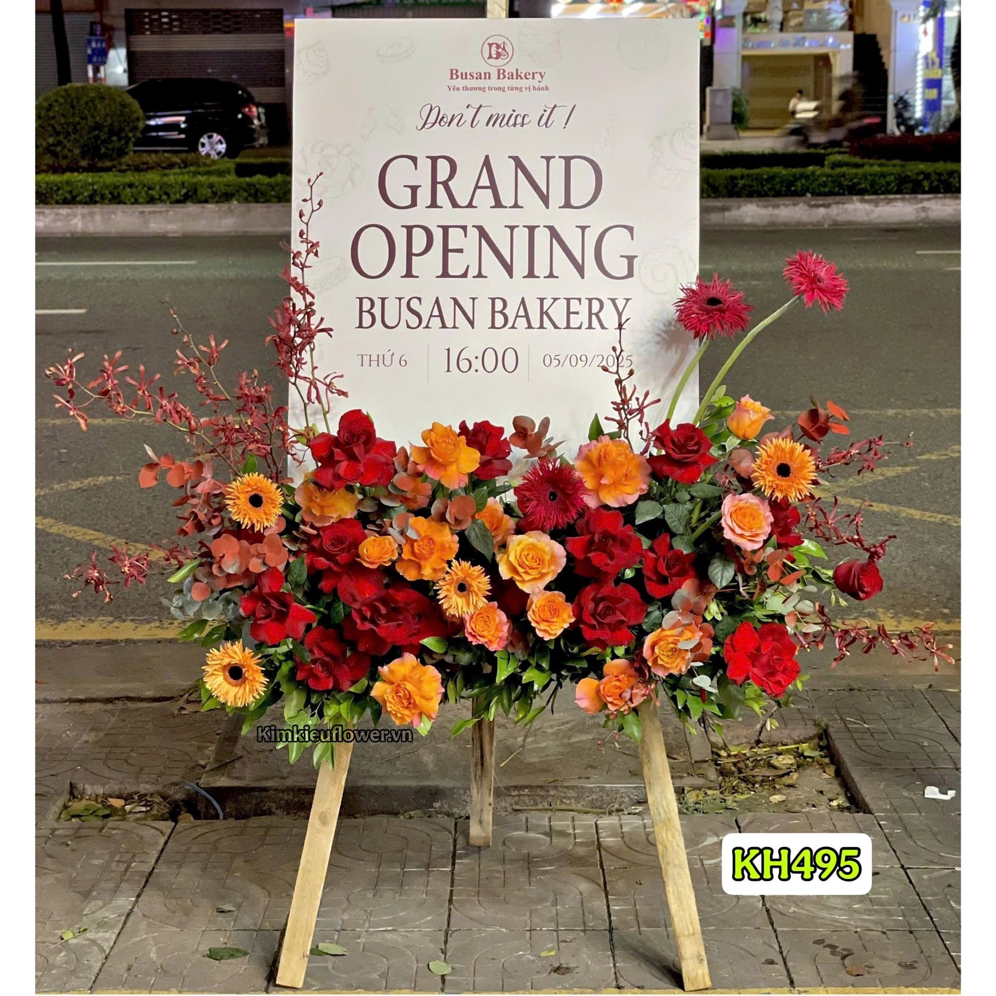 Kệ hoa chúc mừng tone đỏ cam - KH495