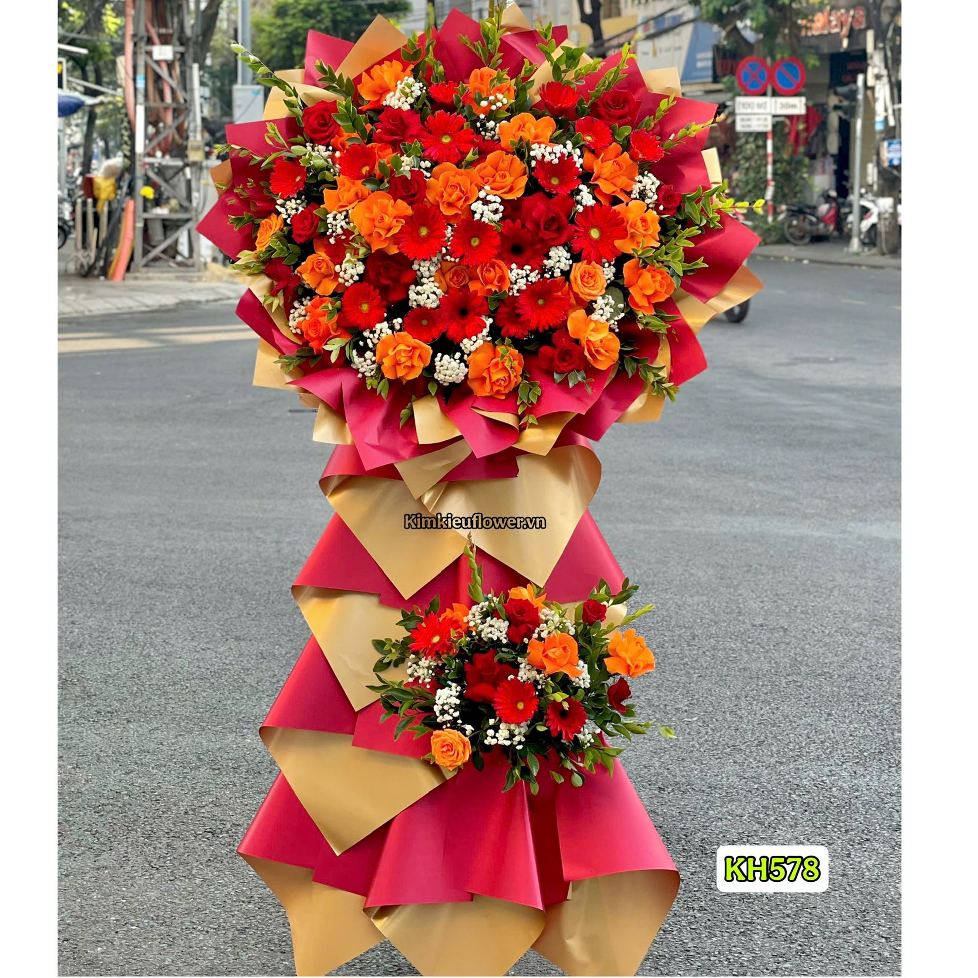 Kệ hoa chúc mừng tone đỏ cam - KH578