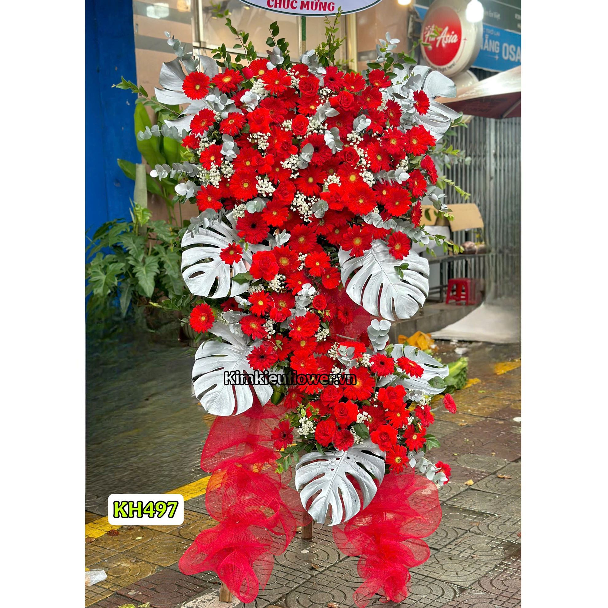 Kệ hoa chúc mừng tone đỏ - KH497