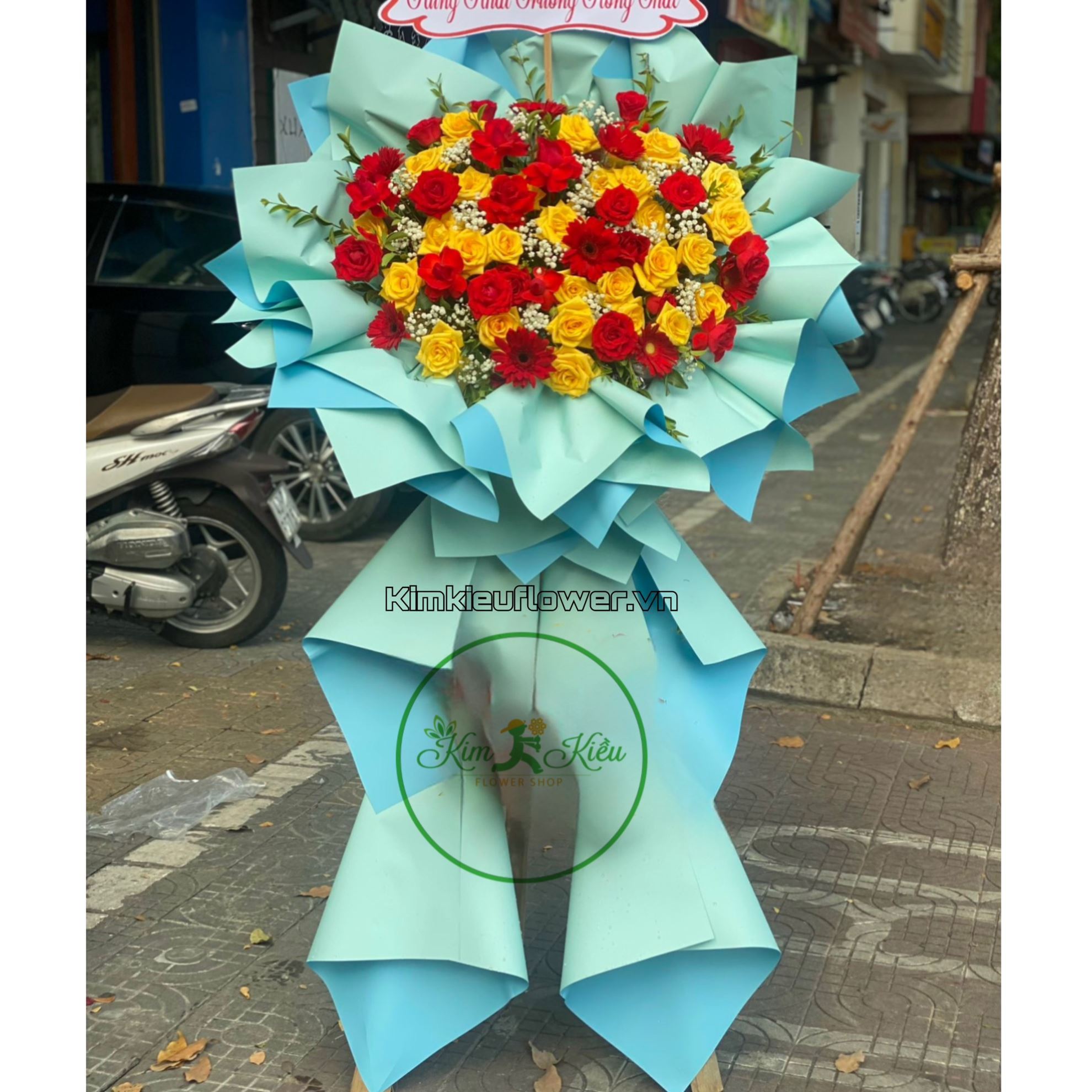 Kệ hoa chúc mừng tone đỏ, vàng - KH195