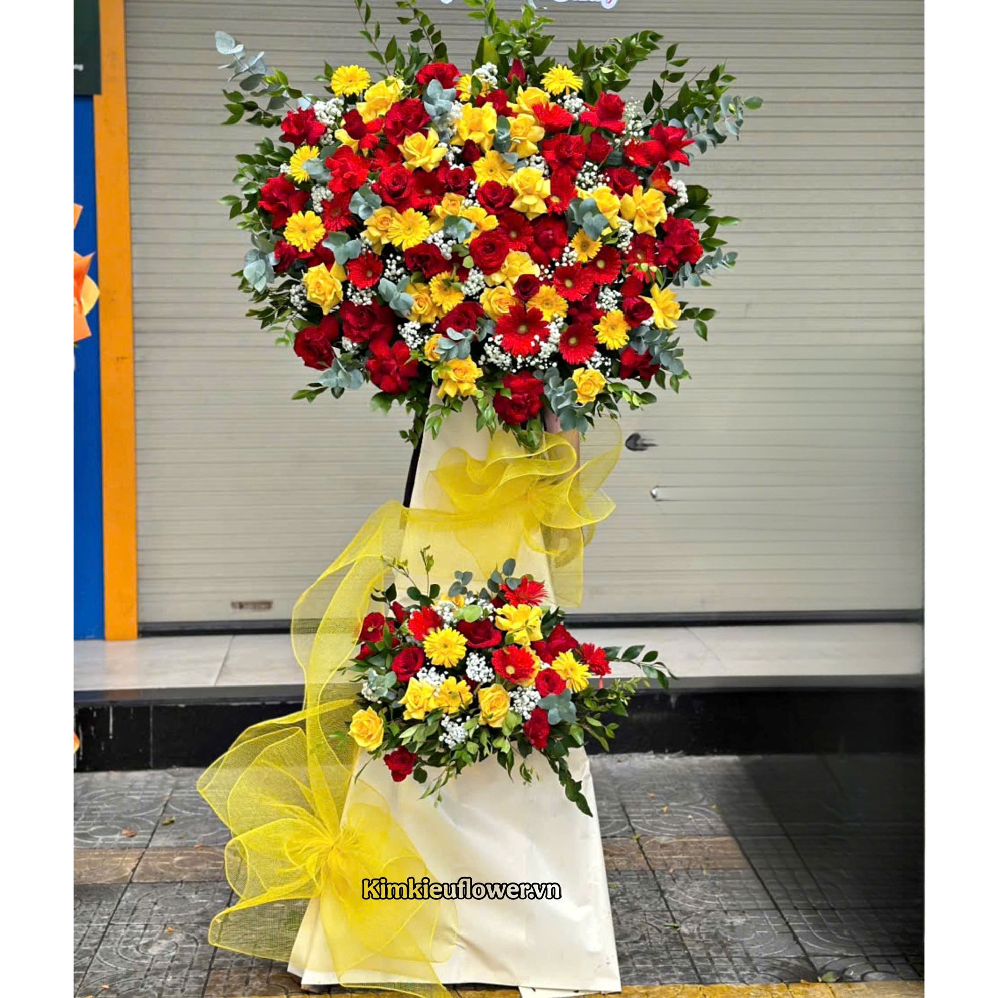Kệ hoa chúc mừng tone đỏ vàng - KH452