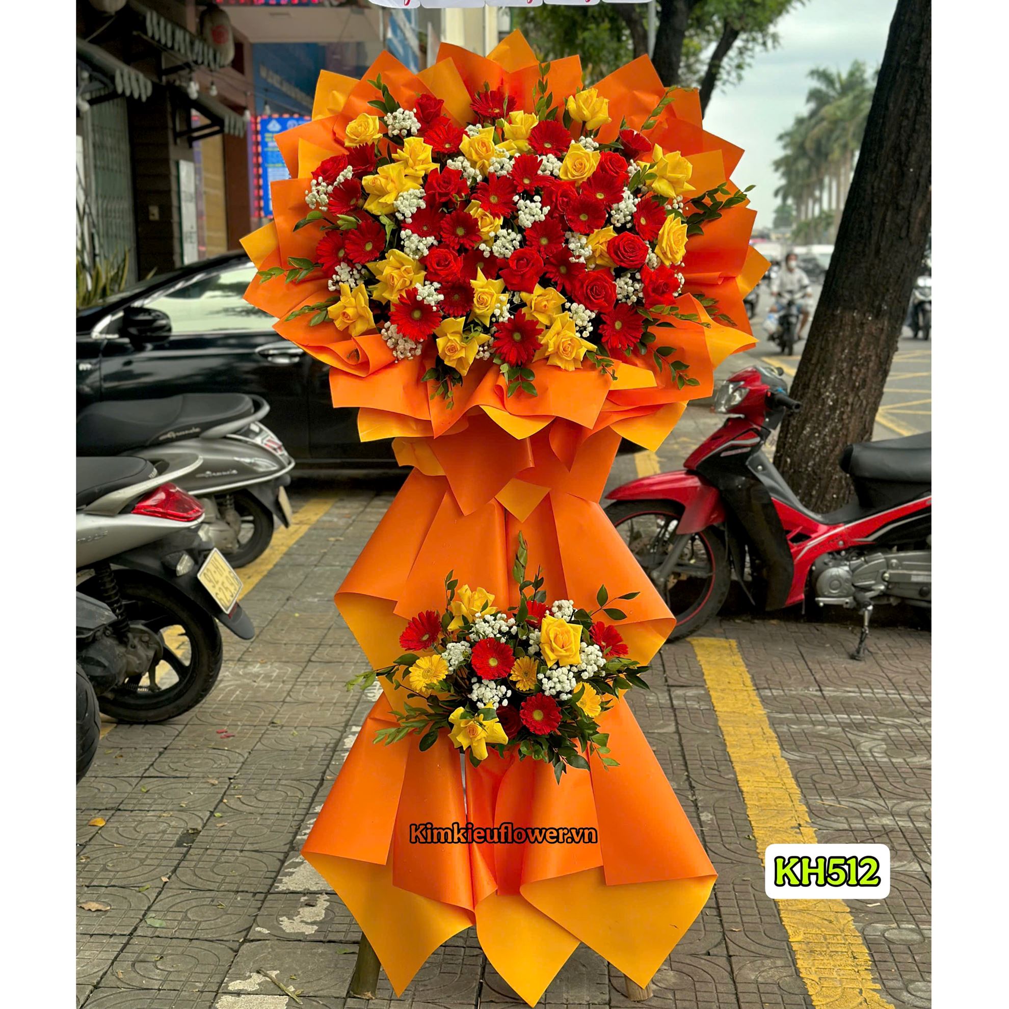 Kệ hoa chúc mừng tone đỏ vàng - KH512