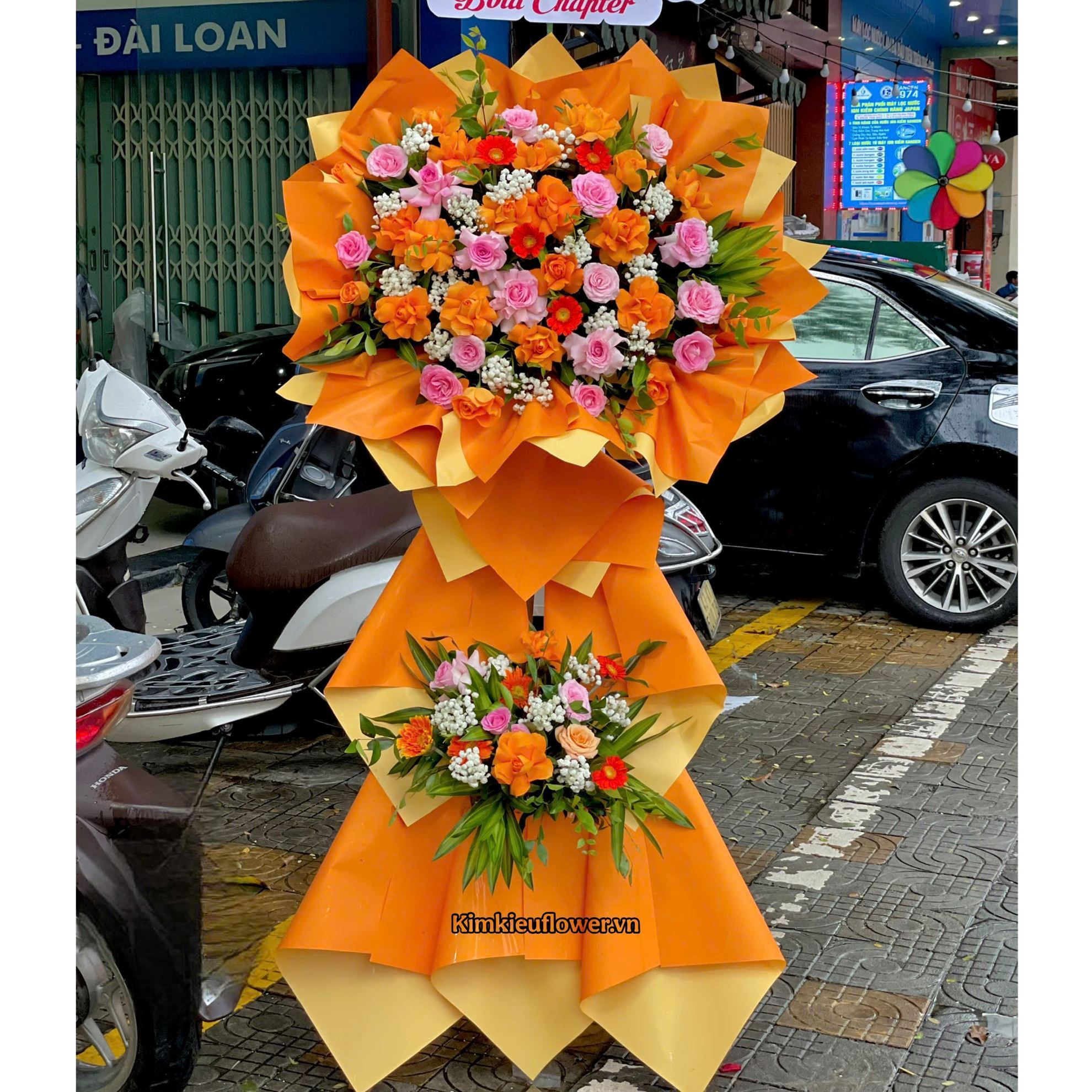 Kệ hoa chúc mừng tone hồng cam - KH487