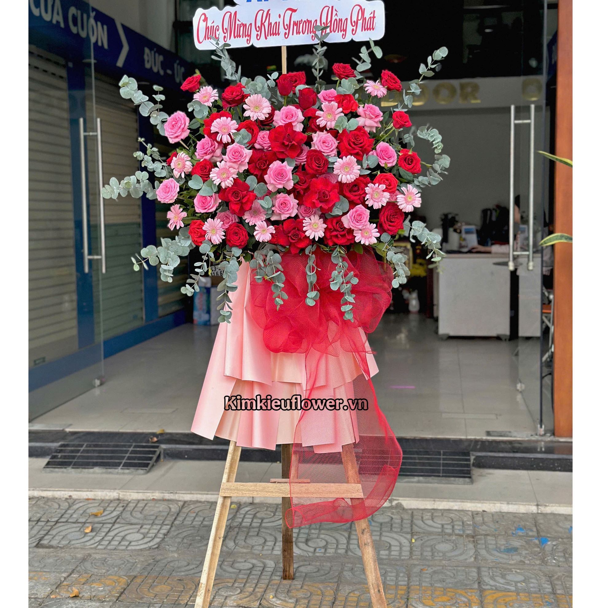 Kệ hoa chúc mừng tone hồng, đỏ - KH335