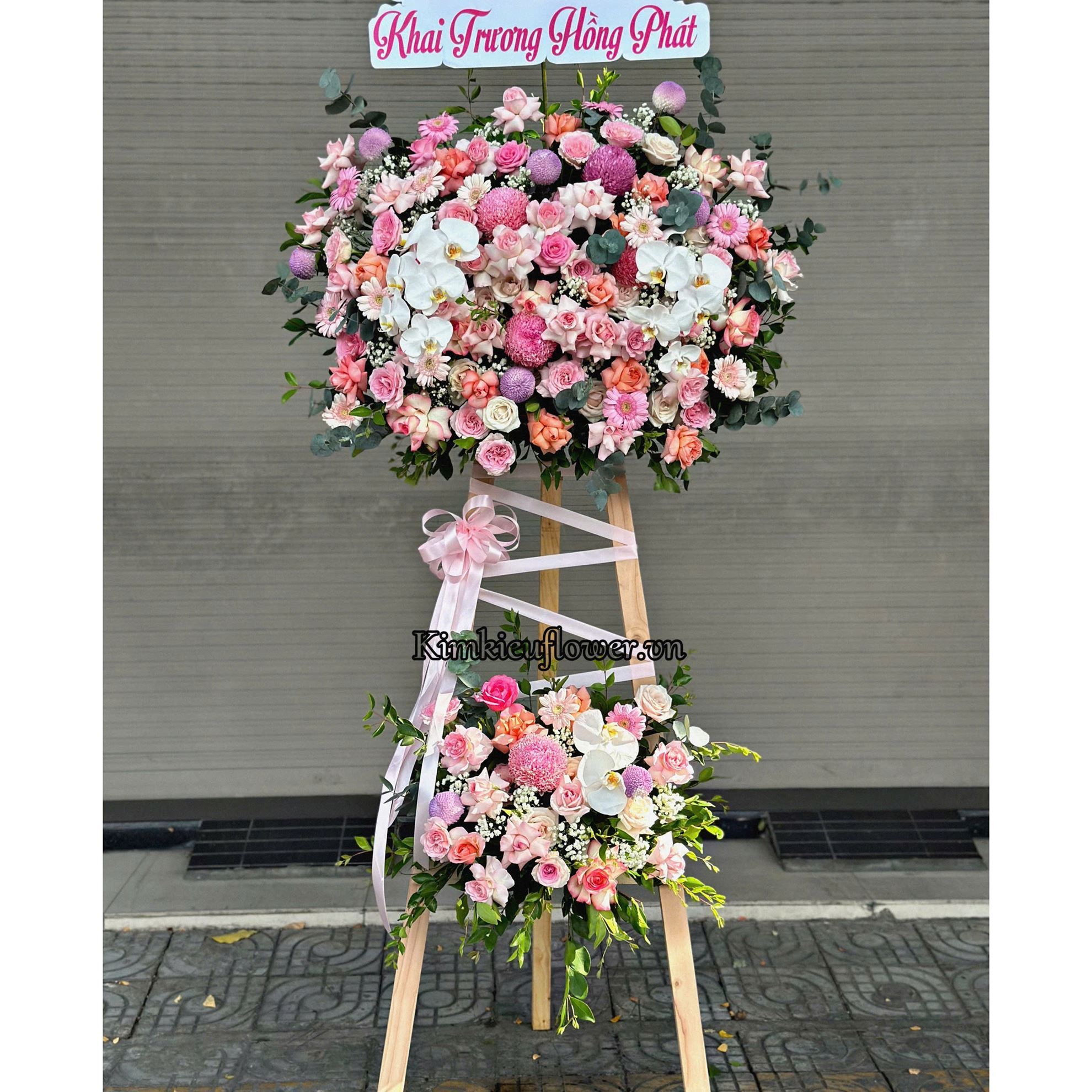 Kệ hoa chúc mừng tone hồng mix lan hồ điệp - KH286