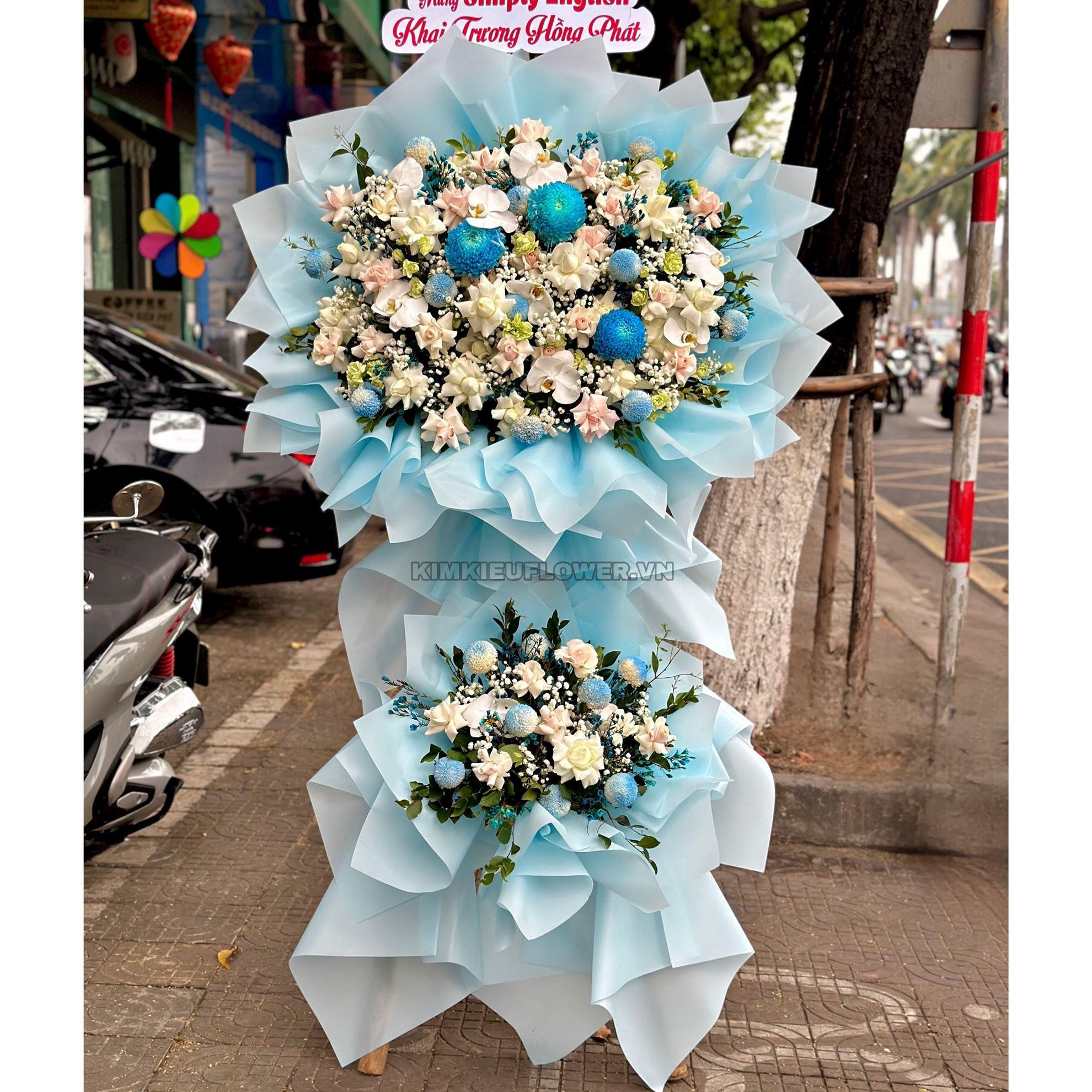 Kệ hoa chúc mừng tone kem mix xanh dương - KH247