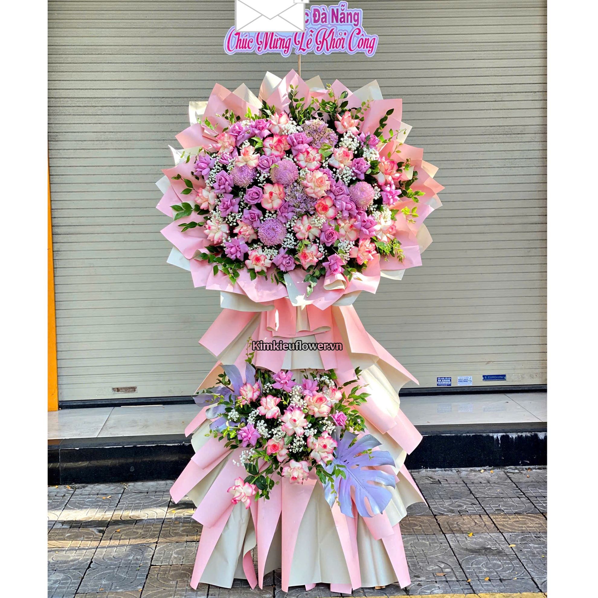 Kệ hoa chúc mừng tone tím hồng - KH468