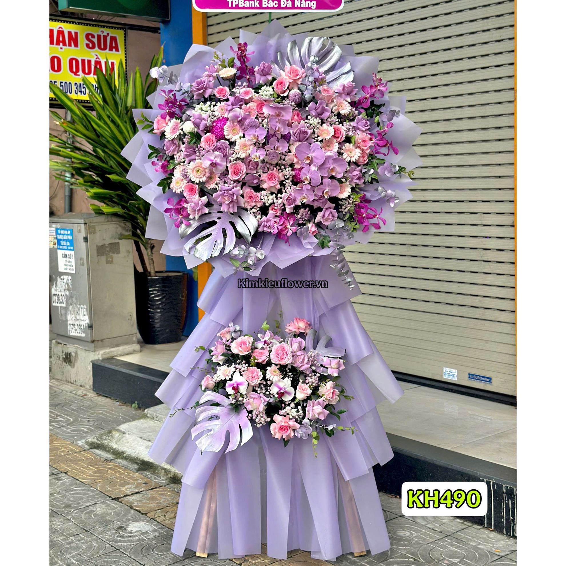 Kệ hoa chúc mừng tone tím hồng mix lan hồ điệp - KH490