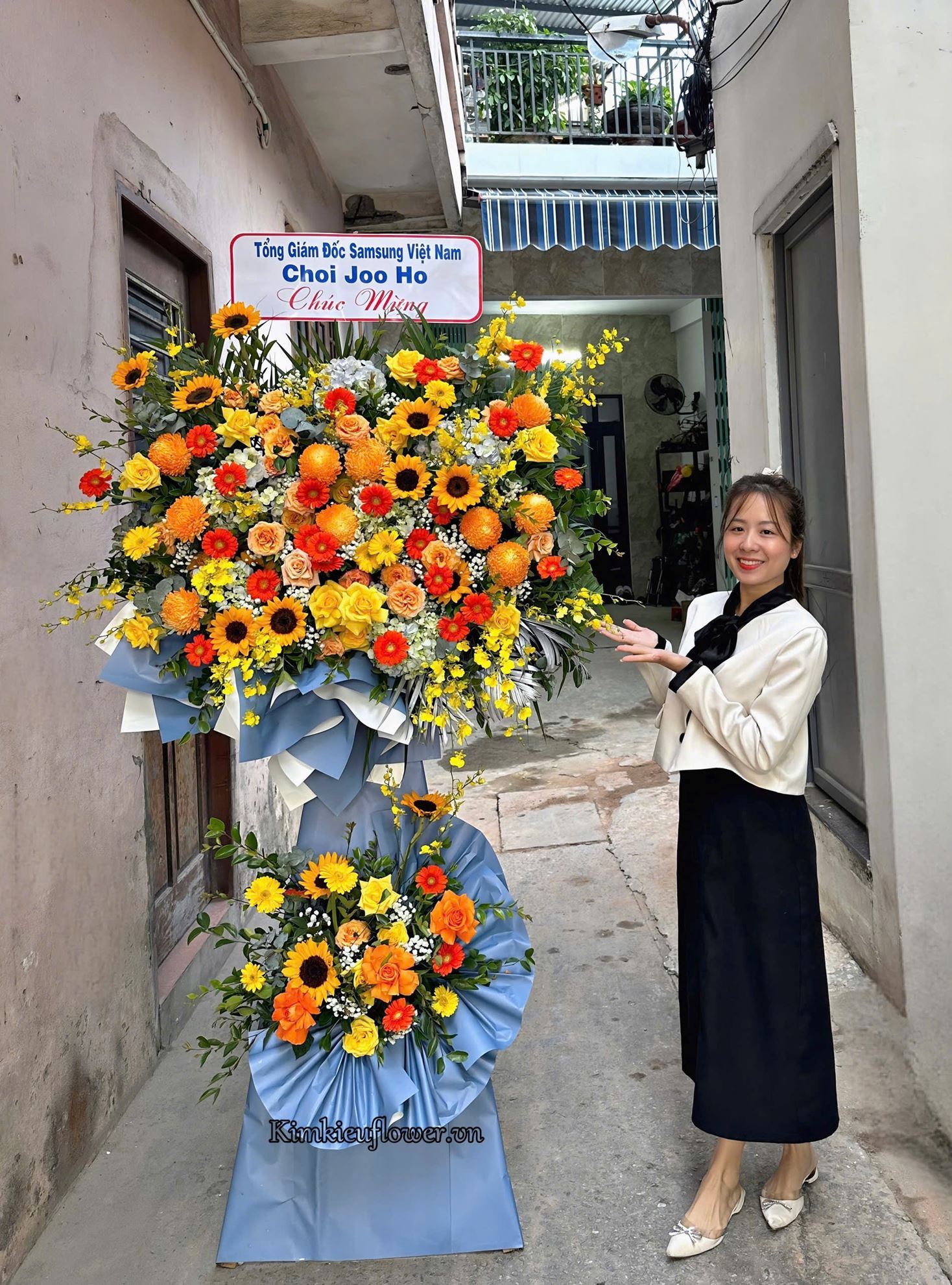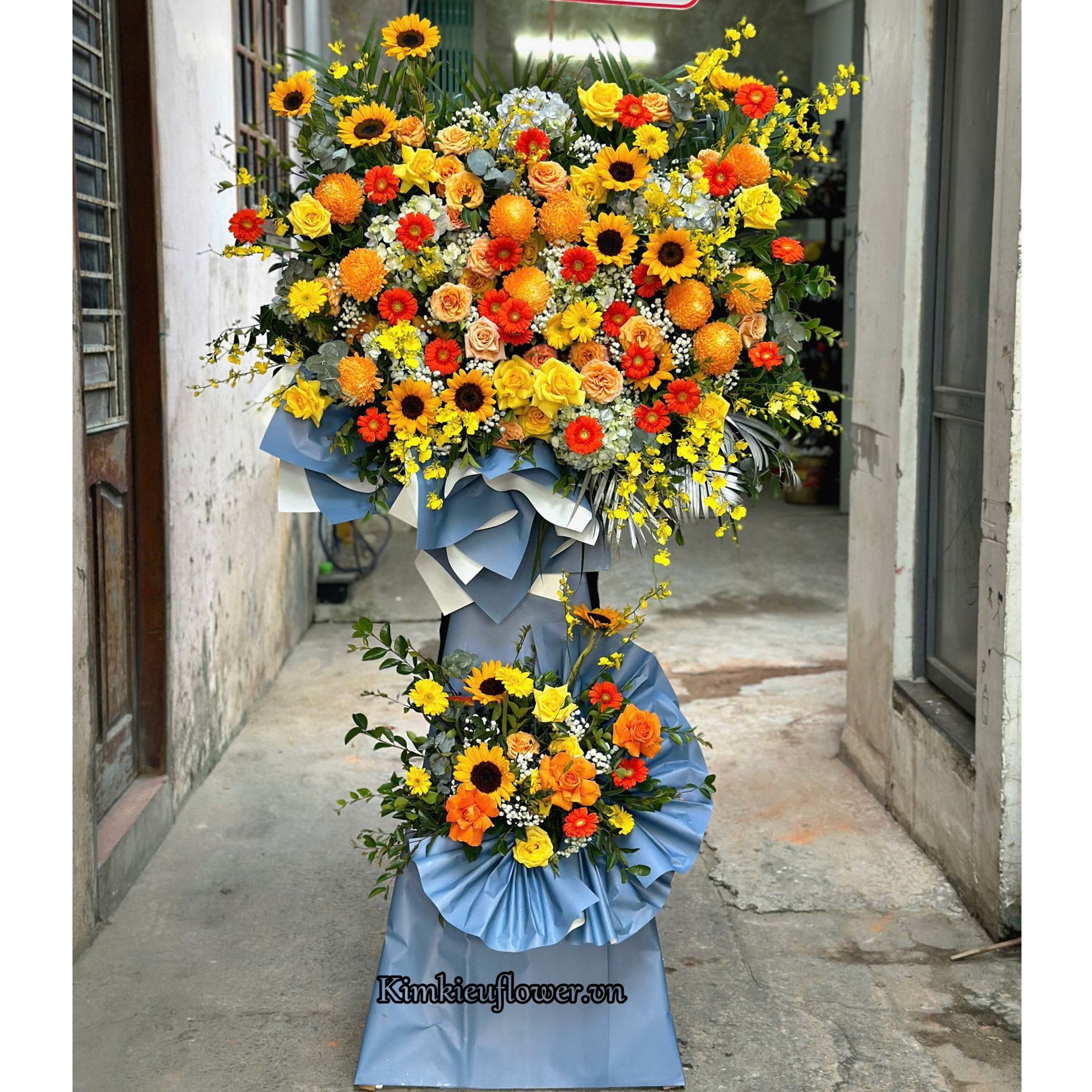 Kệ hoa chúc mừng tone vàng cam - KH307