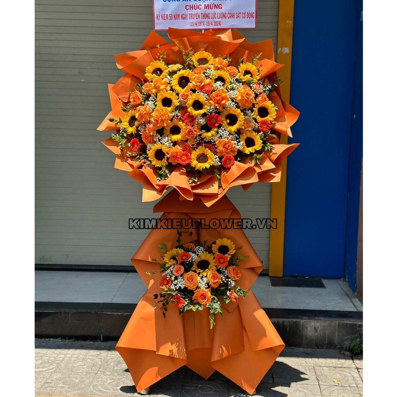Kệ hoa chúc mừng tone cam, hướng dương - KH265