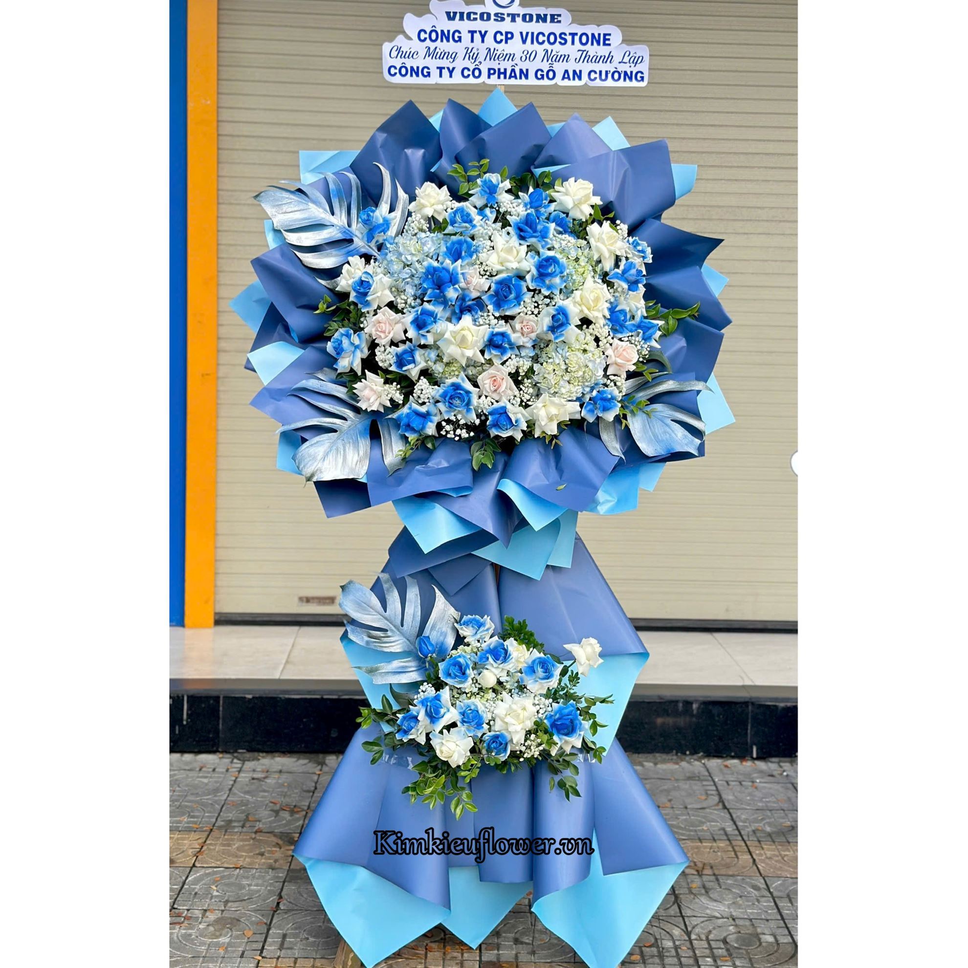Kệ hoa chúc mừng tone xanh dương - KH294