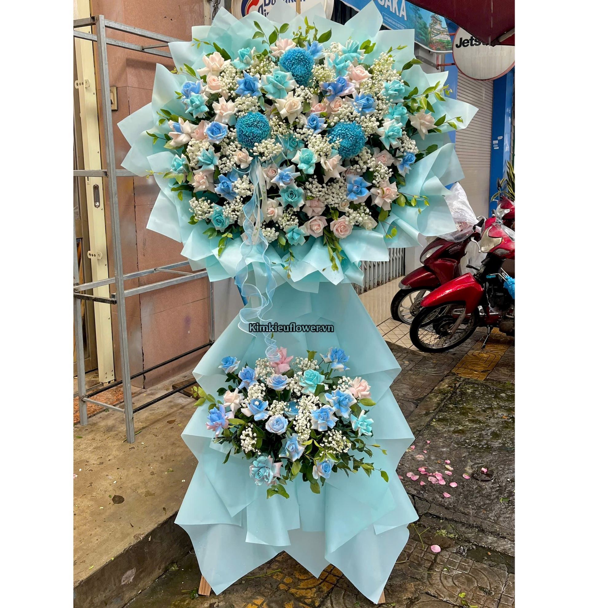 Kệ hoa chúc mừng tone xanh dương - KH485
