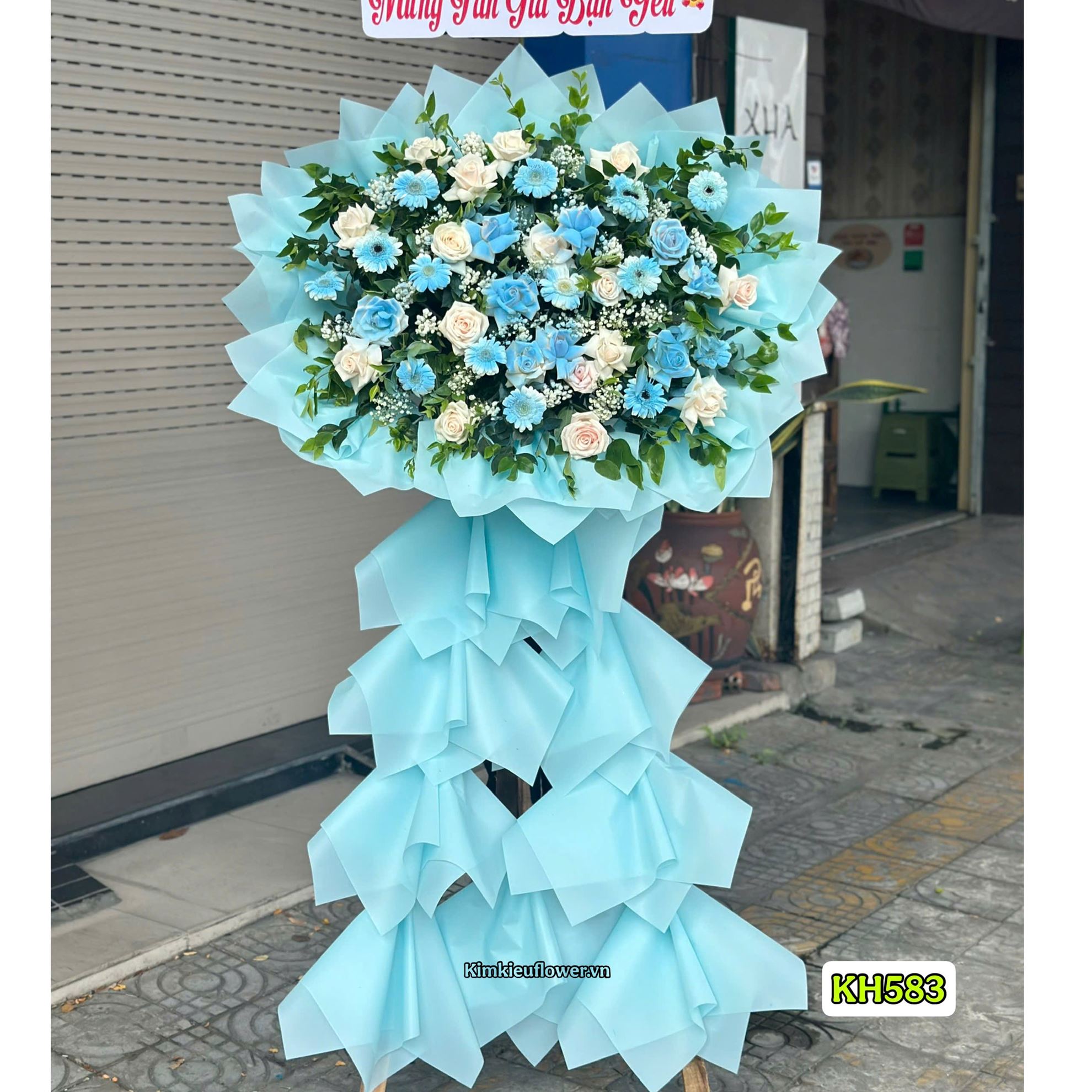 Kệ hoa chúc mừng tone xanh dương - KH583