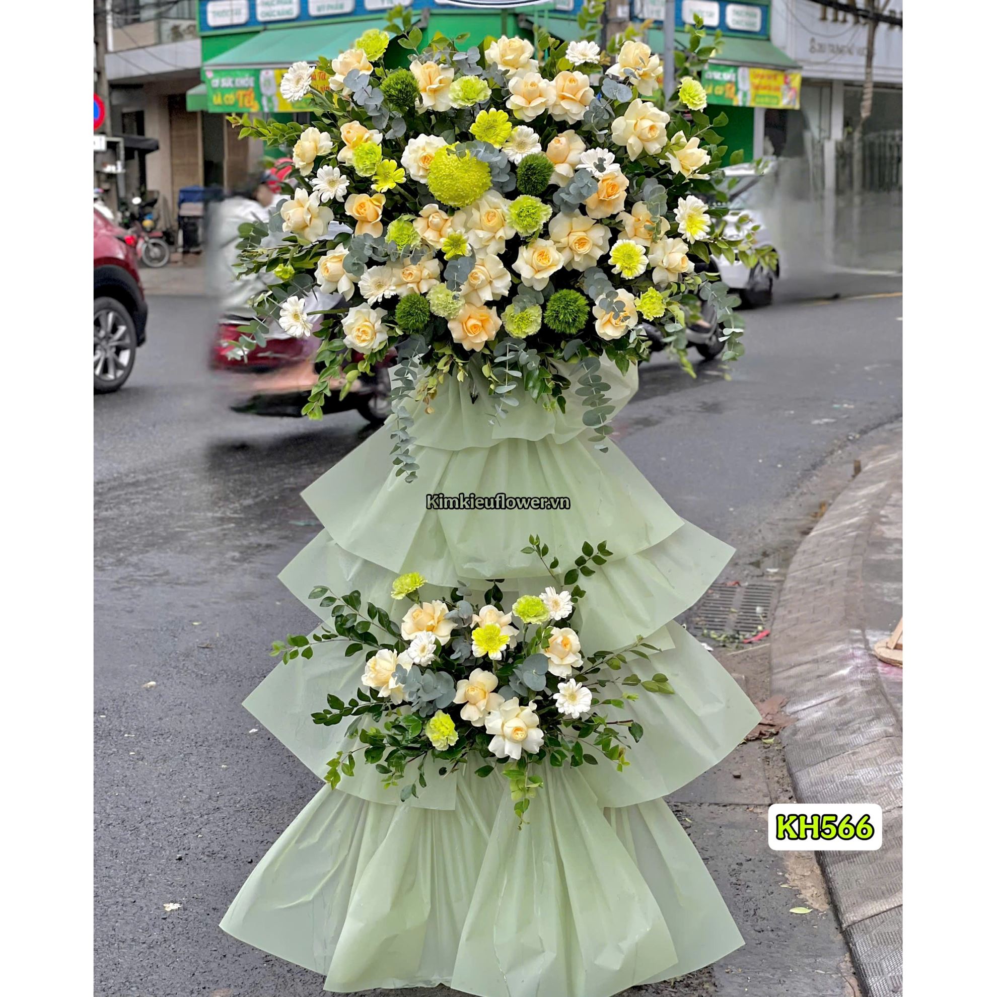 Kệ hoa chúc mừng victor vàng mix xanh lá - KH566