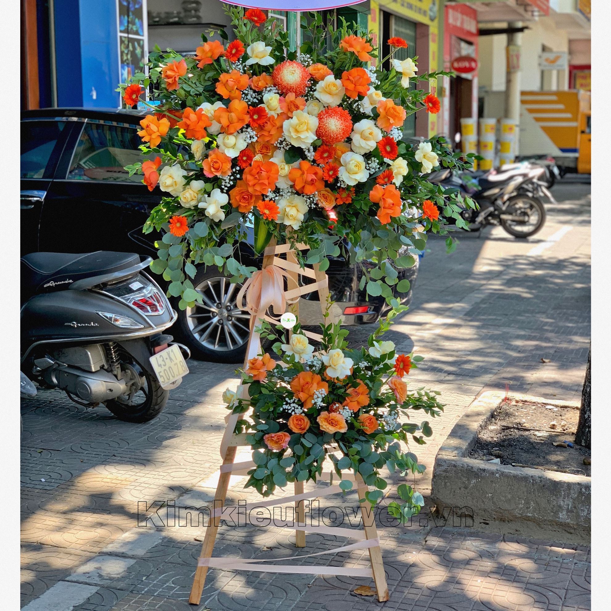 Mẫu KH139 gồm các loại hoa: + hoa hồng vàng mặt trời + hoa hồng cam quốc vương + 2 cúc mẫu đơn cam hàng nhập khẩu Malaysia + đồng tiền nhí + và các lá phụ khác - Liên hệ KIM KIỀU FLOWER để tư vấn thiết kế mẫu hoa theo yêu cầu bạn nhé!