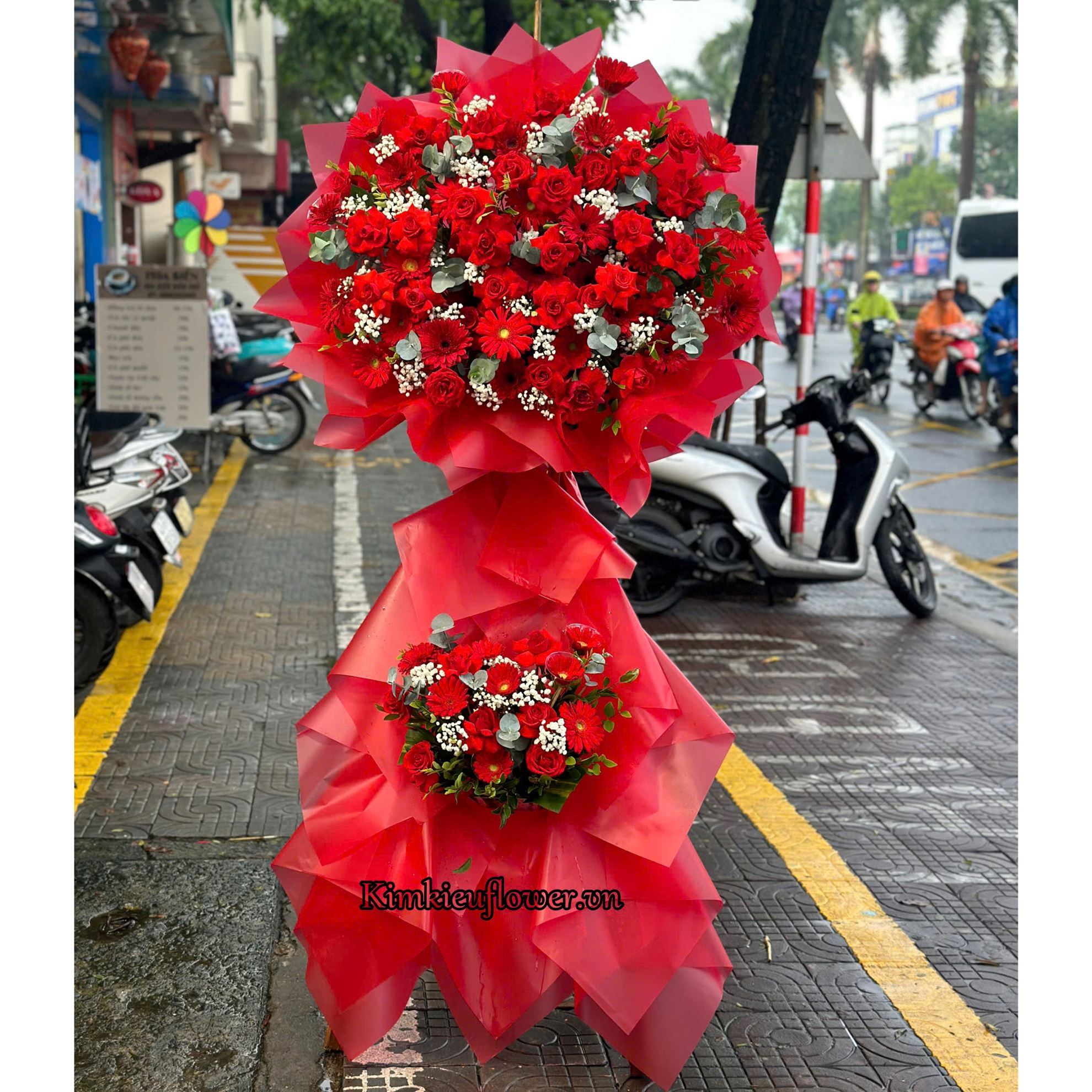 Kệ hoa hồng đỏ mix đồng tiền đỏ - KH319