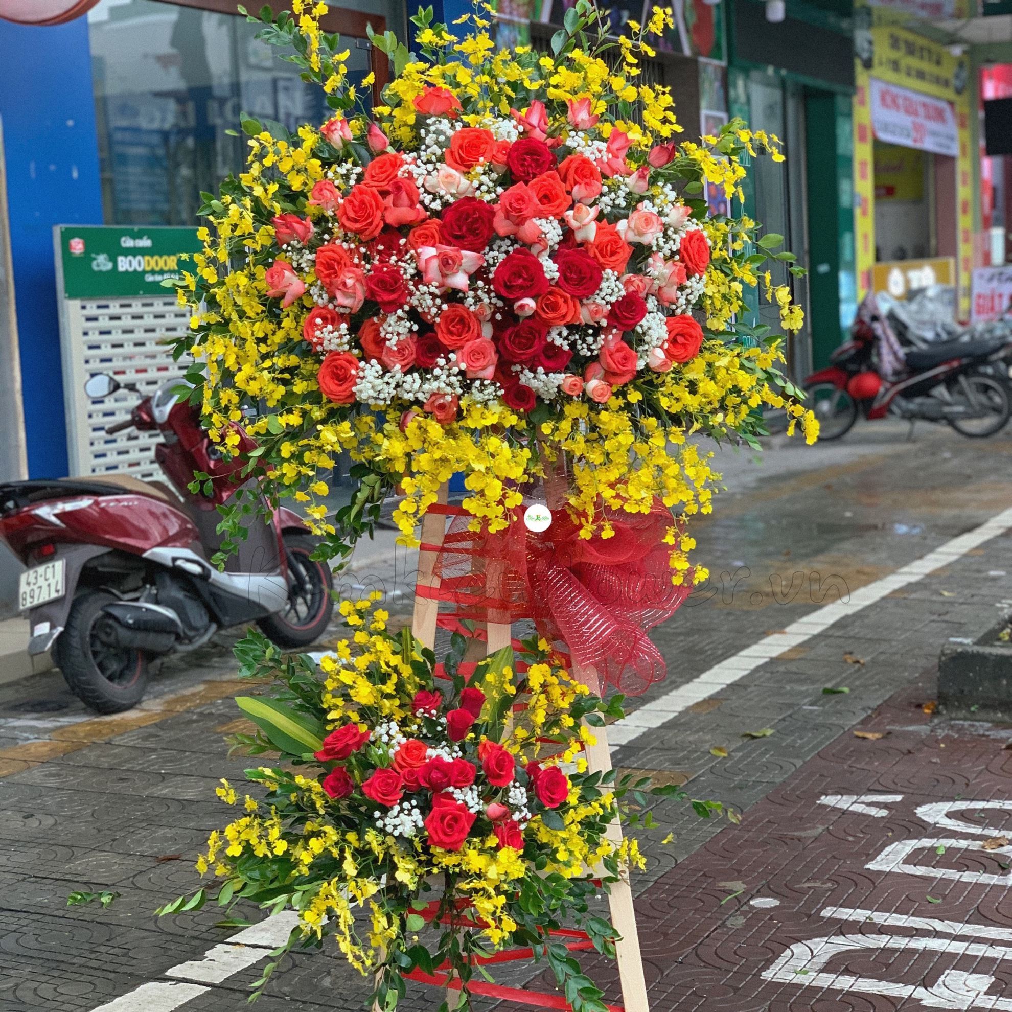 Mẫu KH45 gồm các loại hoa: + hoa hồng đỏ ớt + hoa hồng Ohara đỏ + lan vũ nữ + hồng son môi + và các hoa,lá phụ khác- Liên hệ KIM KIỀU FLOWER để tư vấn thiết kế mẫu hoa theo yêu cầu bạn nhé!
