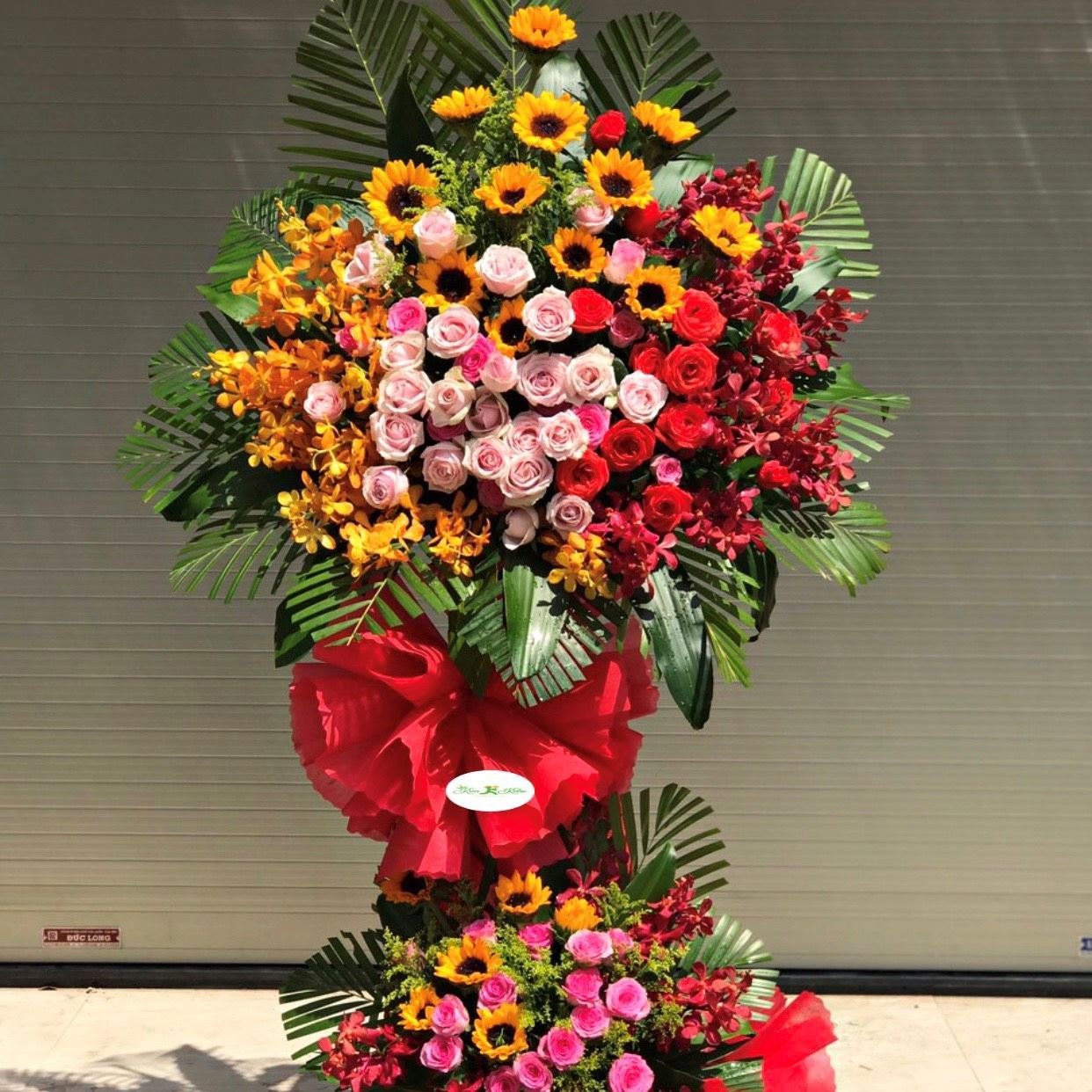 Mẫu KH23: Những bông hoa tươi thắm nhiều màu sắc được phối hợp hài hoà đem đến cảm giác mới mẻ, rạng rỡ và đong đầy nhiều mong chờ và phấn khởi cho những khởi đầu mới, cho những thành công ngoài mong đợi. Chiếc kệ được thiết kế với thông điệp đặc biệt thể hiện niềm vui và mong ước chân thành dành cho những thành công sắp tới và sự khởi đầu mới đầy tốt đẹp của người nhận mà người gửi muốn nhắn nhủ và trao gửi. Đây là món quà chắc chắn sẽ mang đến niềm vui bất tận cho bất cứ ai nhận được. - Mẫu KH23 gồm các loại hoa: + hoa hồng + hoa hướng dương + lan vàng + lan đỏ + và các hoa,lá phụ khác - Liên hệ KIM KIỀU FLOWER để tư vấn thiết kế mẫu hoa theo yêu cầu bạn nhé!