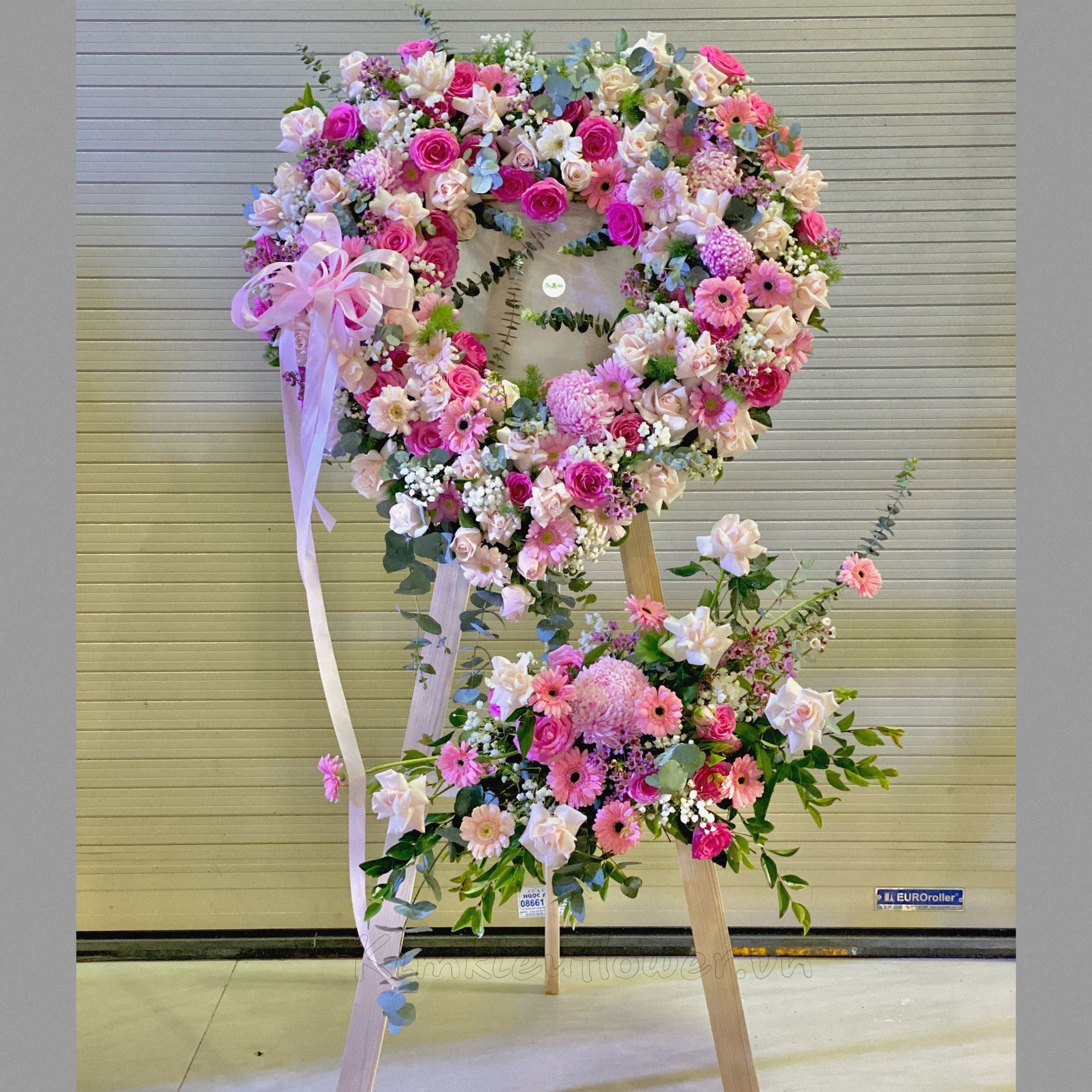 Mẫu KH90 gồm các loại hoa : + hoa hồng kem + hoa hồng dâu + đồng tiền trắng + đồng tiền hồng + cúc mẫu đơn hồng + và các lá phụ khác - Liên hệ KIM KIỀU FLOWER để tư vấn thiết kế mẫu hoa theo yêu cầu bạn nhé!