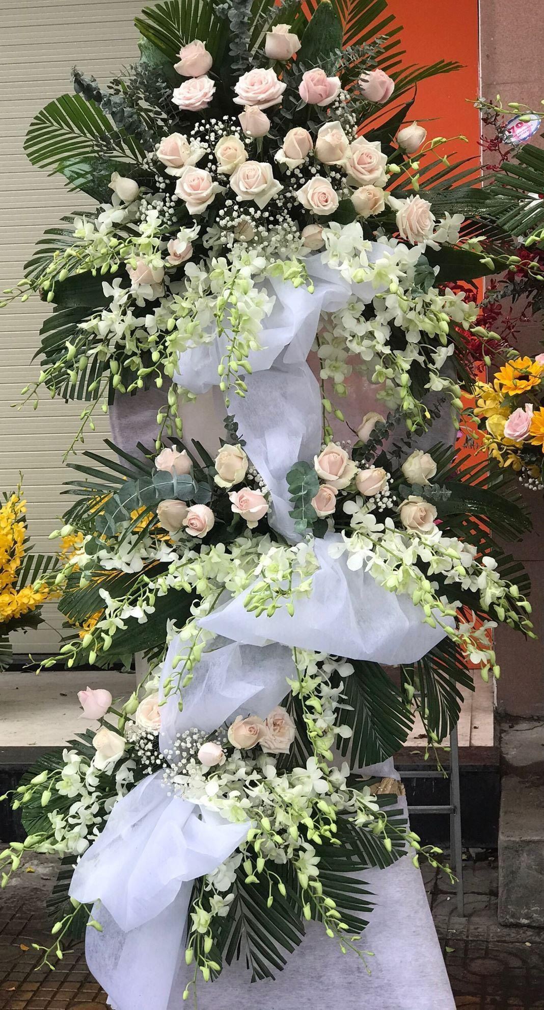 Mẫu KV27: Hoa tươi không chỉ được dùng để chúc mừng, để tặng nhau những dịp vui vẻ. Hoa tươi còn có thể được dùng để san sẻ nỗi buồn, thể hiện sự thành kính, tiếc nuối cho những gì còn dang dở. Kính viếng một chiếc kệ hoa để thể hiện lời cầu nguyện, tiếng lòng hiếu thảo đến với người đã an nghỉ. - Mẫu KV27 gồm các loại hoa: + hoa hồng kem + hoa lan trắng + và các hoa,lá phụ khác - Liên hệ KIM KIỀU FLOWER để tư vấn thiết kế mẫu hoa theo yêu cầu bạn nhé!