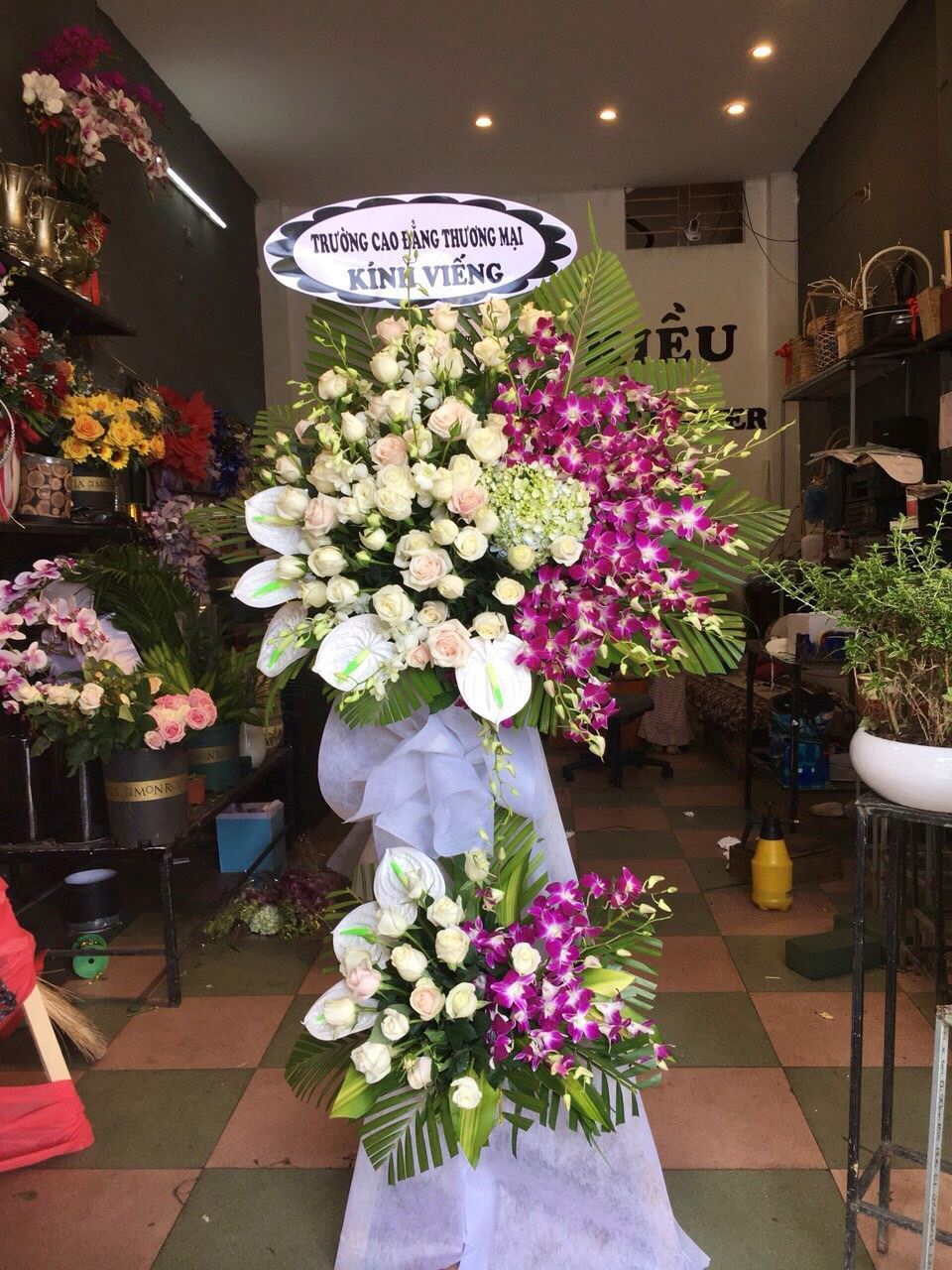 Mẫu KV15 gồm các loại hoa: + hoa hồng kem + lan tím + huyết môn trắng + cẩm tú cầu + và các hoa,lá phụ khác - Liên hệ KIM KIỀU FLOWER để tư vấn thiết kế mẫu hoa theo yêu cầu bạn nhé!