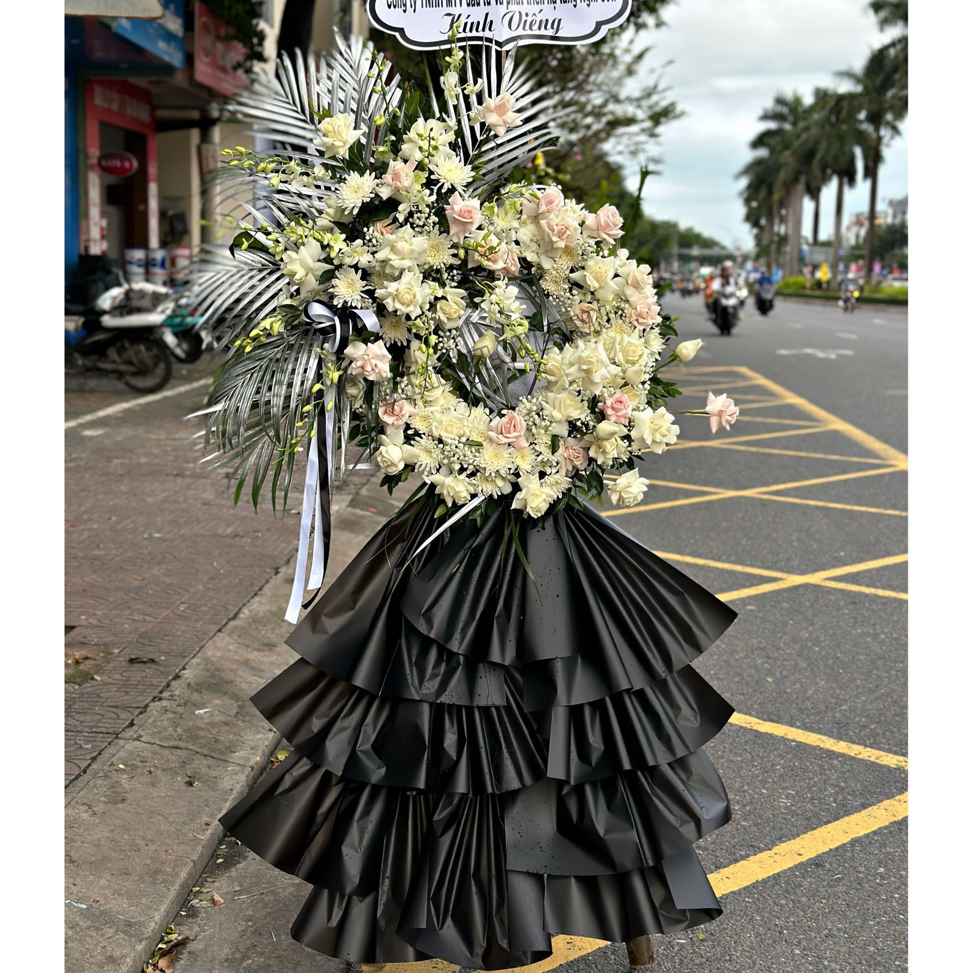 Vòng hoa KV188 gồm: + Hoa hồng trắng + Hoa hồng kem + Cúc trắng +Lan trắng + và các hoa,lá phụ khác - Liên hệ KIM KIỀU FLOWER để tư vấn thiết kế mẫu hoa theo yêu cầu bạn nhé!