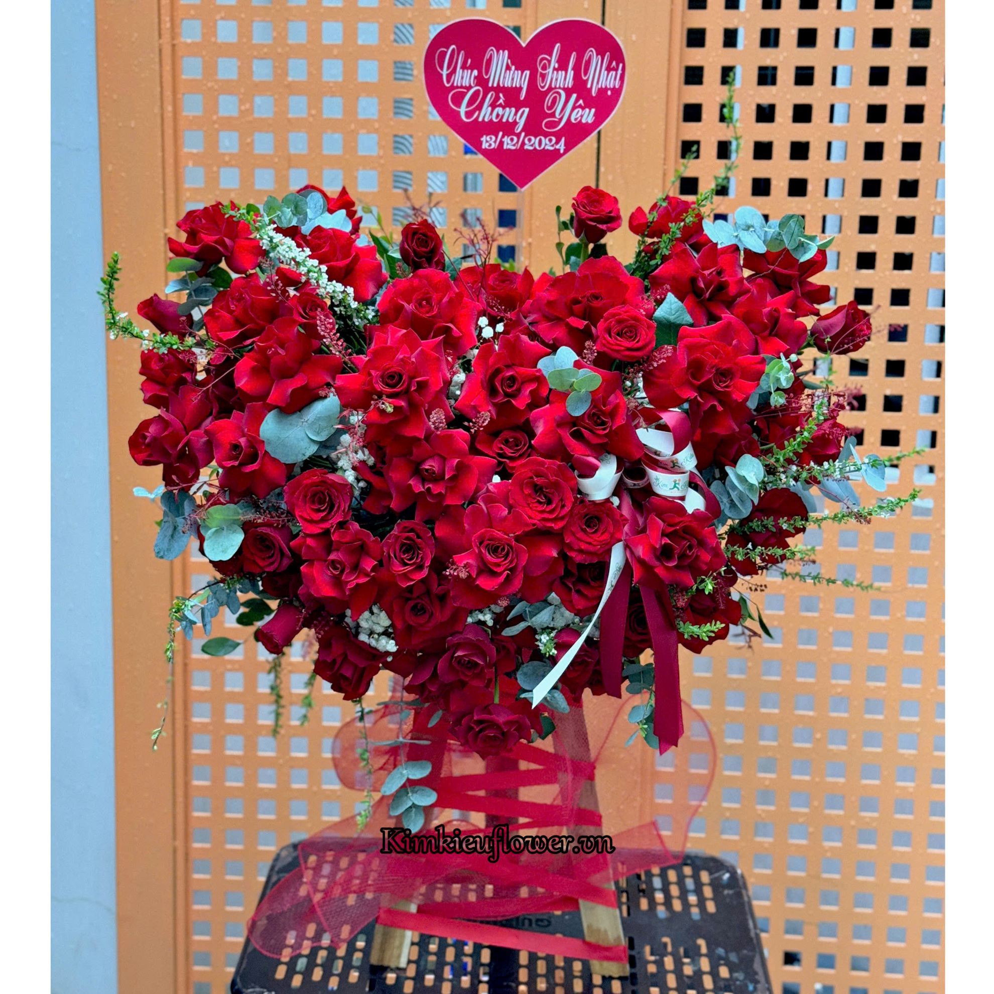 Mẫu KH315 gồm các loại hoa: + 55 hoa hồng đỏ eku + tuyết mai + và các lá phụ khác - Liên hệ KIM KIỀU FLOWER để tư vấn thiết kế mẫu hoa theo yêu cầu bạn nhé!