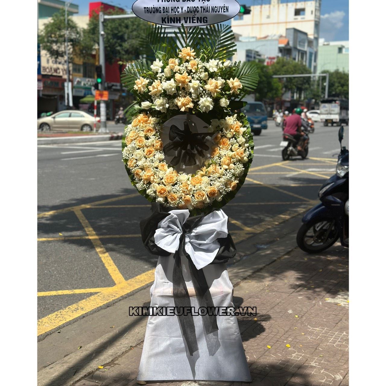 Kệ vòng viếng tone trắng, mỡ gà - KV211