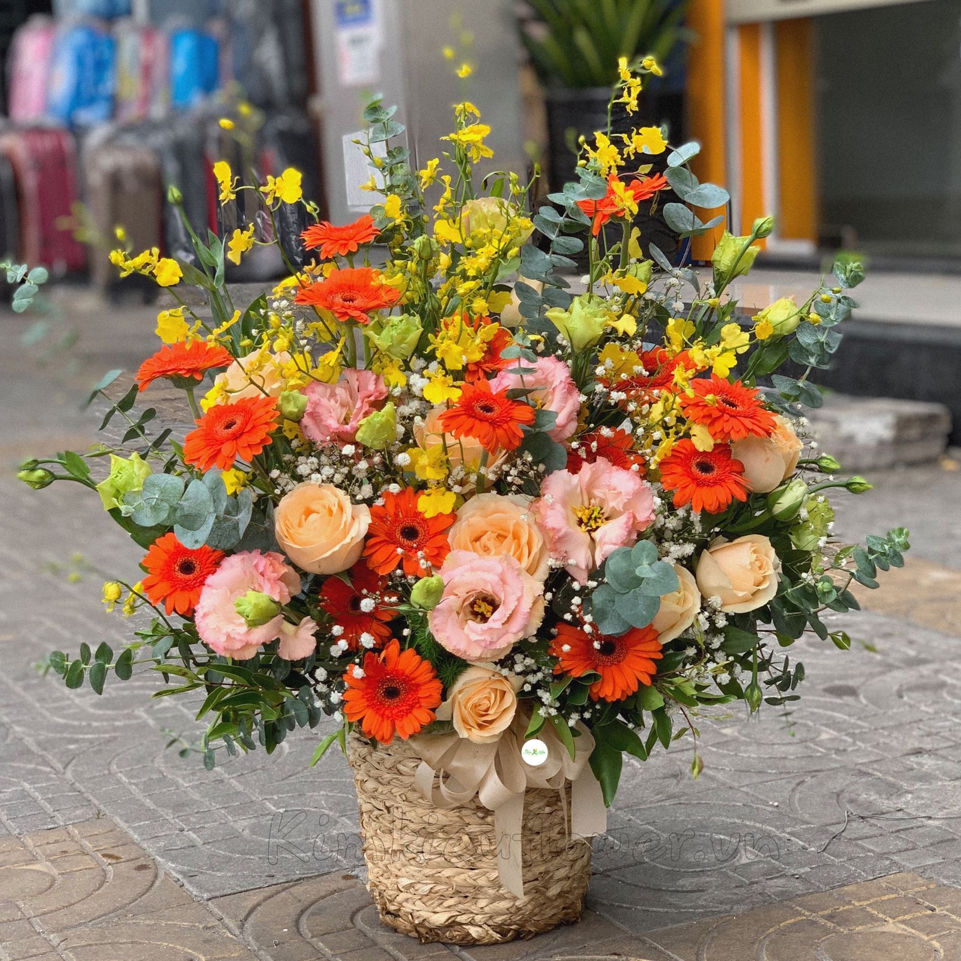 Mẫu HG207 gồm các loại hoa: + hoa đồng tiền cam + hoa hồng mỡ gà + hoa cát tường hồng + hoa lan vũ nữ + và các hoa,lá phụ khác- Liên hệ KIM KIỀU FLOWER để tư vấn thiết kế mẫu hoa theo yêu cầu bạn nhé!