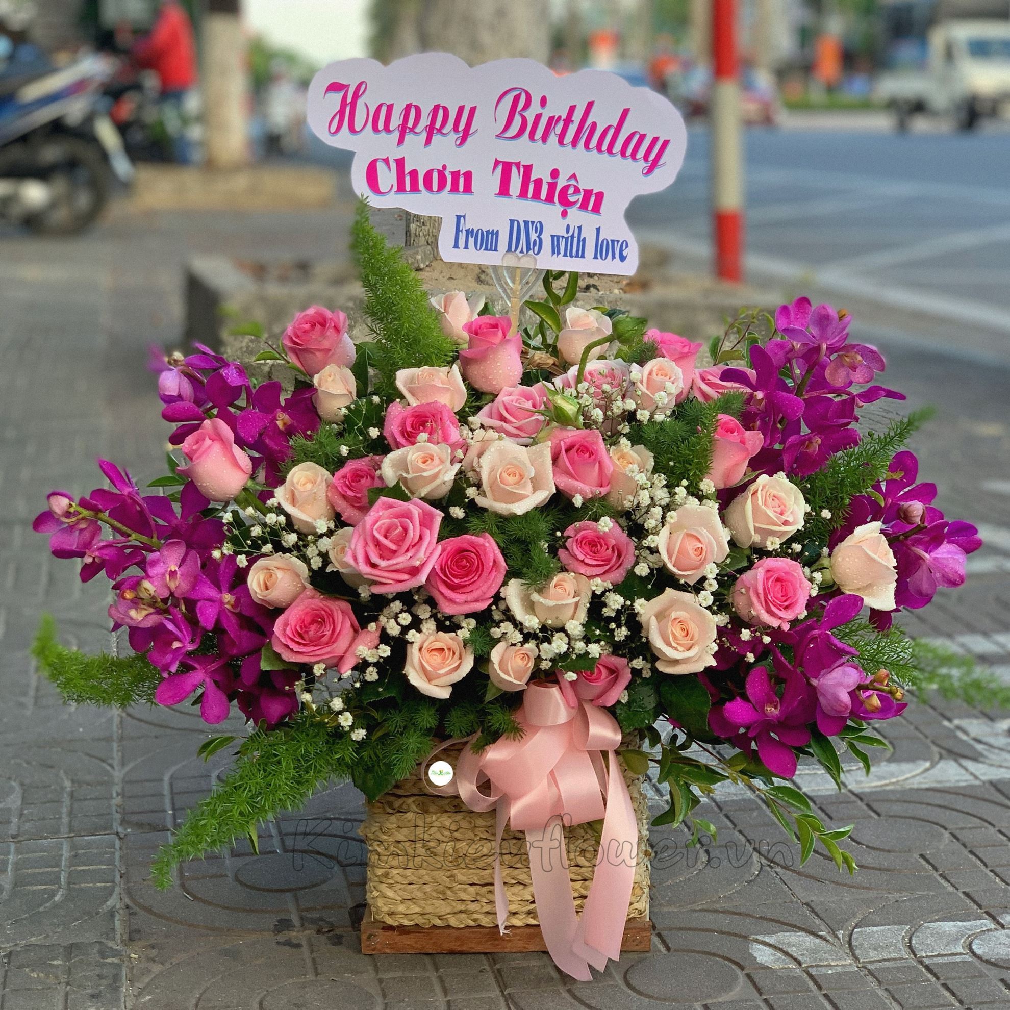 Lẵng hoa hồng dâu, lan tím - HG242