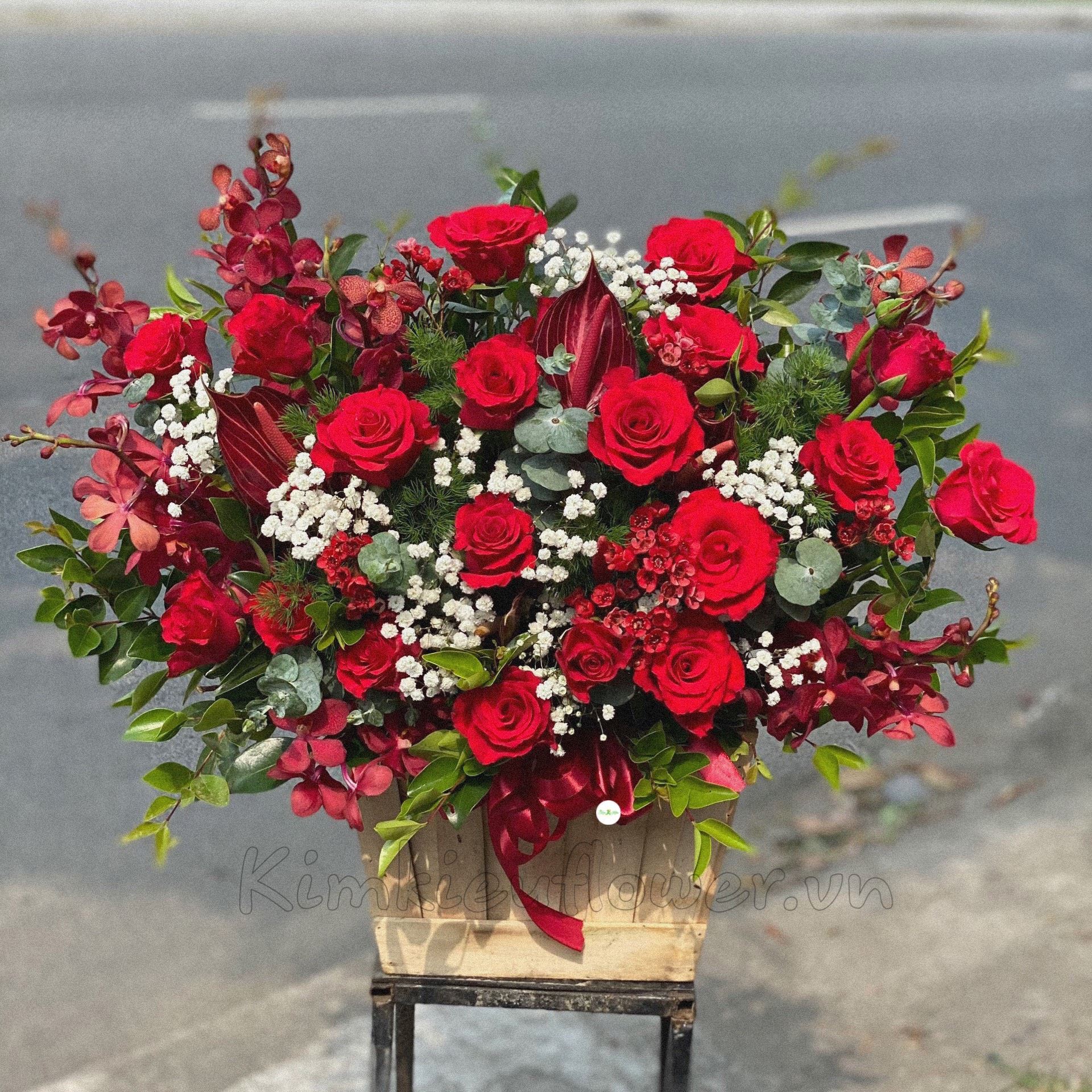 Lẵng hoa hồng đỏ, lan đỏ - HG197