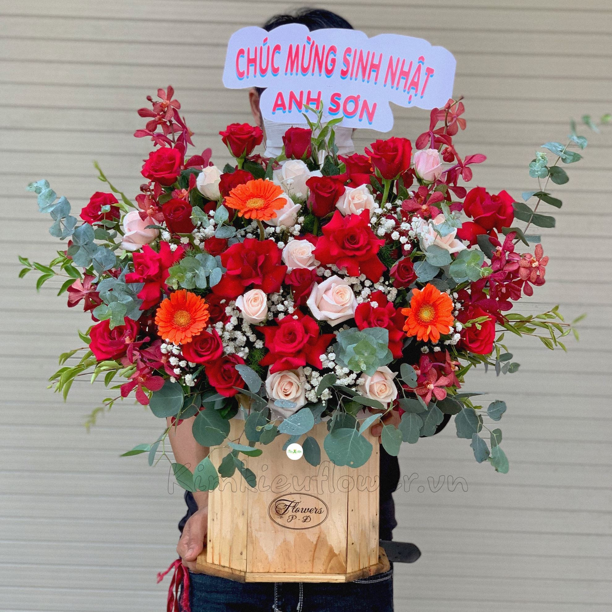 Lẵng hoa hồng đỏ, lan đỏ - HG222