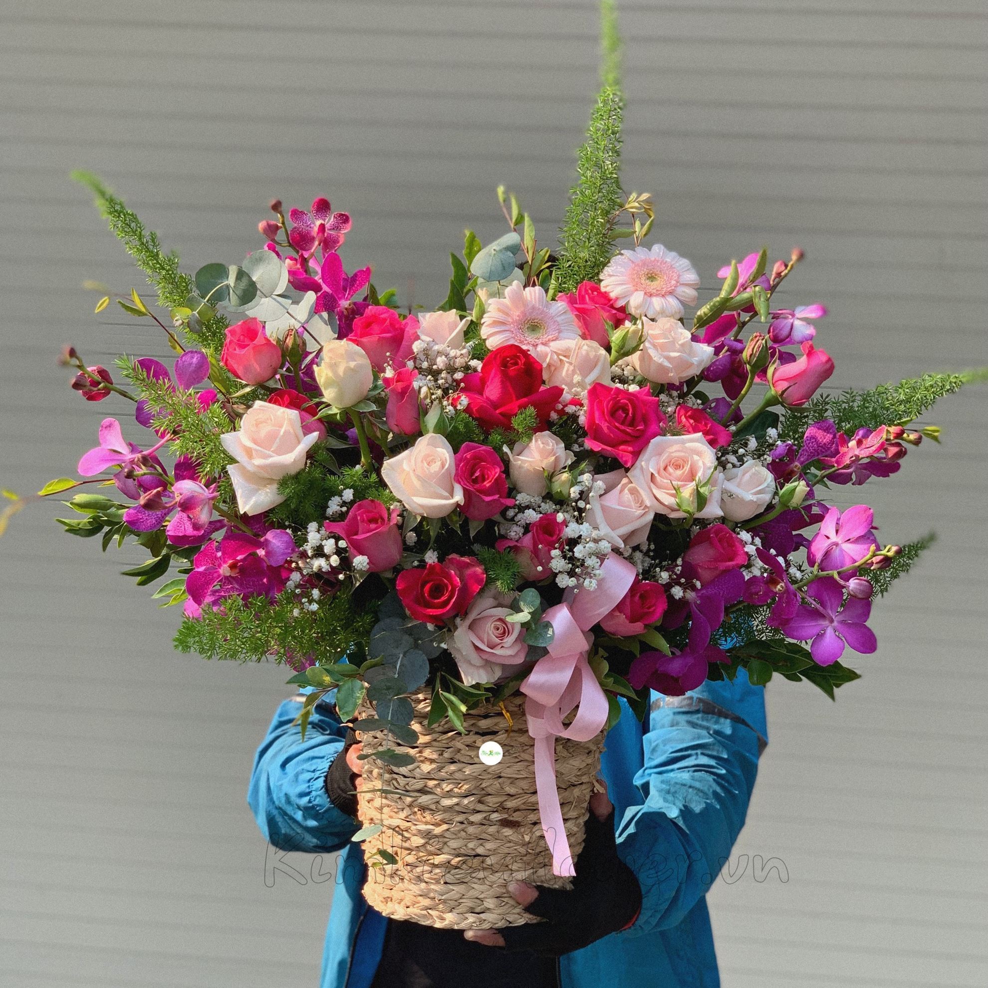 Lẵng hoa hồng, lan tím - HG204